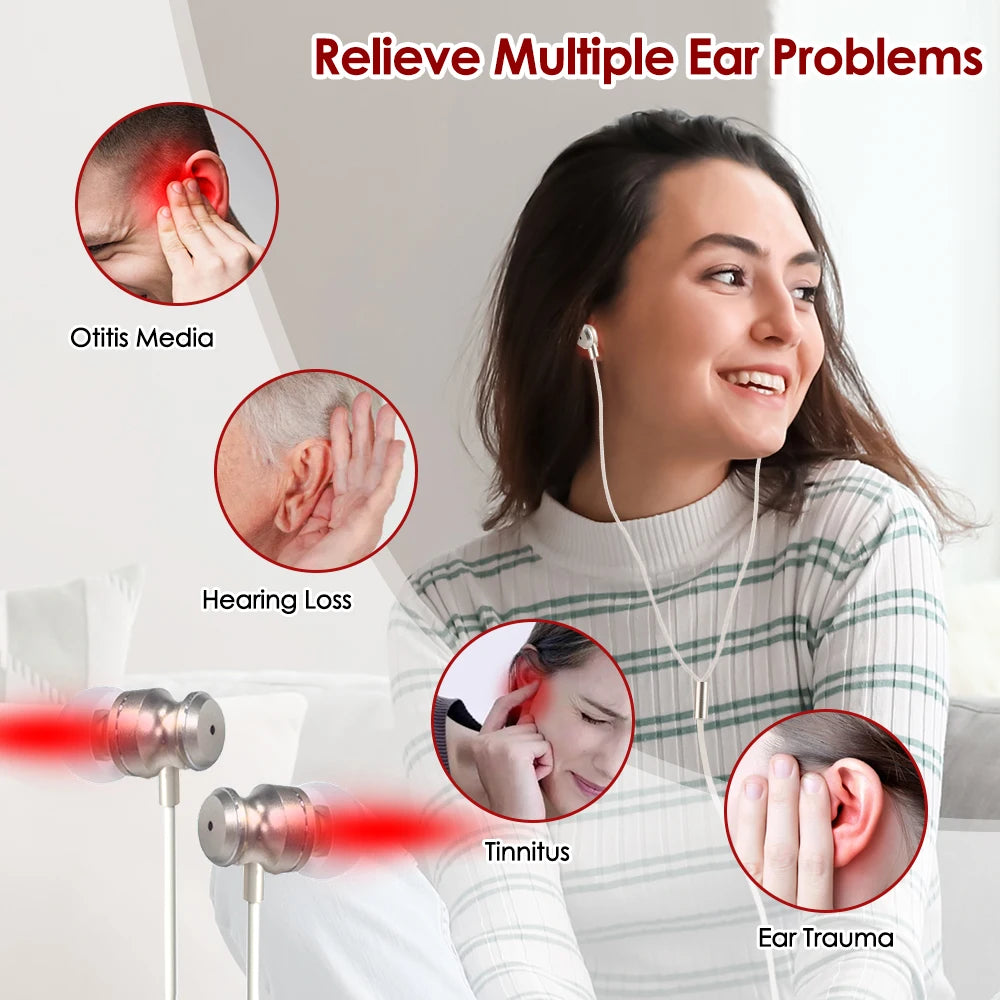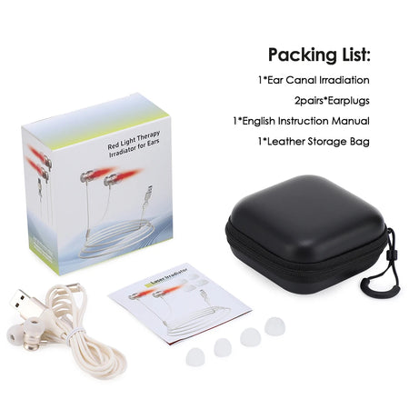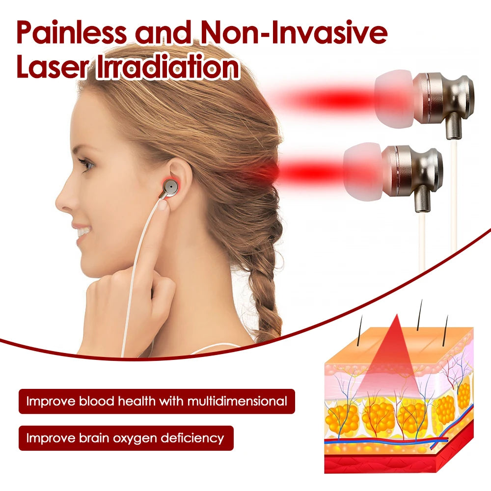 - Icke-invasiv tinnituslindring med 650nm rött ljus som främjar öroncirkulation och hjälper till att lindra yrsel, huvudvärk, tinnitus och sömnlöshet kopplade till otillräcklig blodtillförsel.