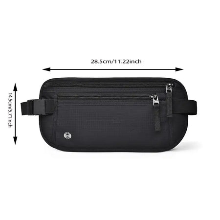 Möt den kompakta, miljövänliga resekompisen designad för att hålla dina nödvändigheter säkra och lättillgängliga: ett smalt resepengabälte som också fungerar som passhållare och påse. Tillverkad av slitstarkt nylon, denna platta, rektangulära påse viks för bekväm dold förvaring och enkel packning. Med RFID-blockerande förmåga hjälper den till att skydda dina kontanter, kreditkort och resehandlingar från obehörig avläsning när du rör dig genom flygplatser och trånga gator. Den smala storleken 28,5 × 14,5 cm passar lätt under kläder eller i en större väska, vilket håller viktiga föremål säkra och organiserade när du är på språng.