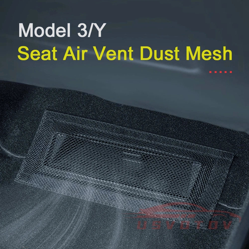 USVOTOV Under Seat Air Vent Cover för Tesla Model 3 och Model Y är en specialdesignad nätpanel som är avsedd att skydda de bakre luftventilerna under sätet. Den passar perfekt och ger ett rent, OEM-liknande utseende samtidigt som den förhindrar att små föremål—babyleksaker, snacks, mynt eller skräp—hamnar i ventilationskanalerna. Viktigt är att den inte stör luftflödet eller luftkonditioneringsutloppet, så din komfort förblir oavbruten.