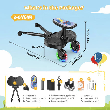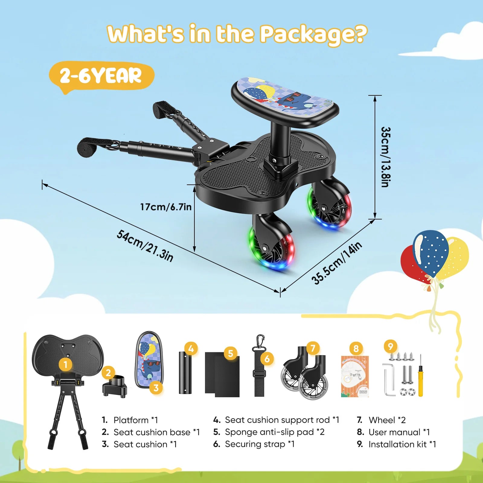 Universell Barnvagn Stegbräda Med LED-ljus Säte Platta