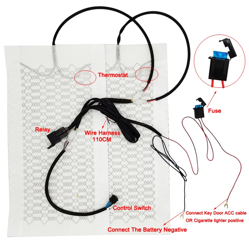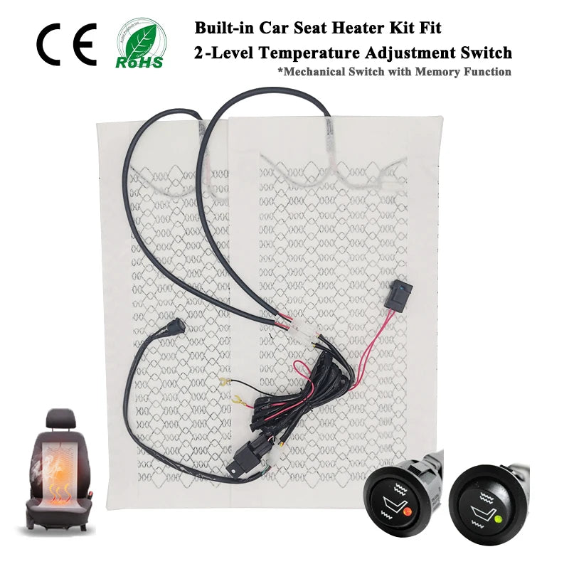 Upplev vinterkörningens komfort med 12V Bilstolsuppvärmningskit som har värmeplattor av kolfiber. Denna inbyggda värmare sitter mellan ditt sitsöverdrag och kudde för att snabbt värma din kropp, vilket hjälper dig att hålla dig varm under kalla pendlingar.