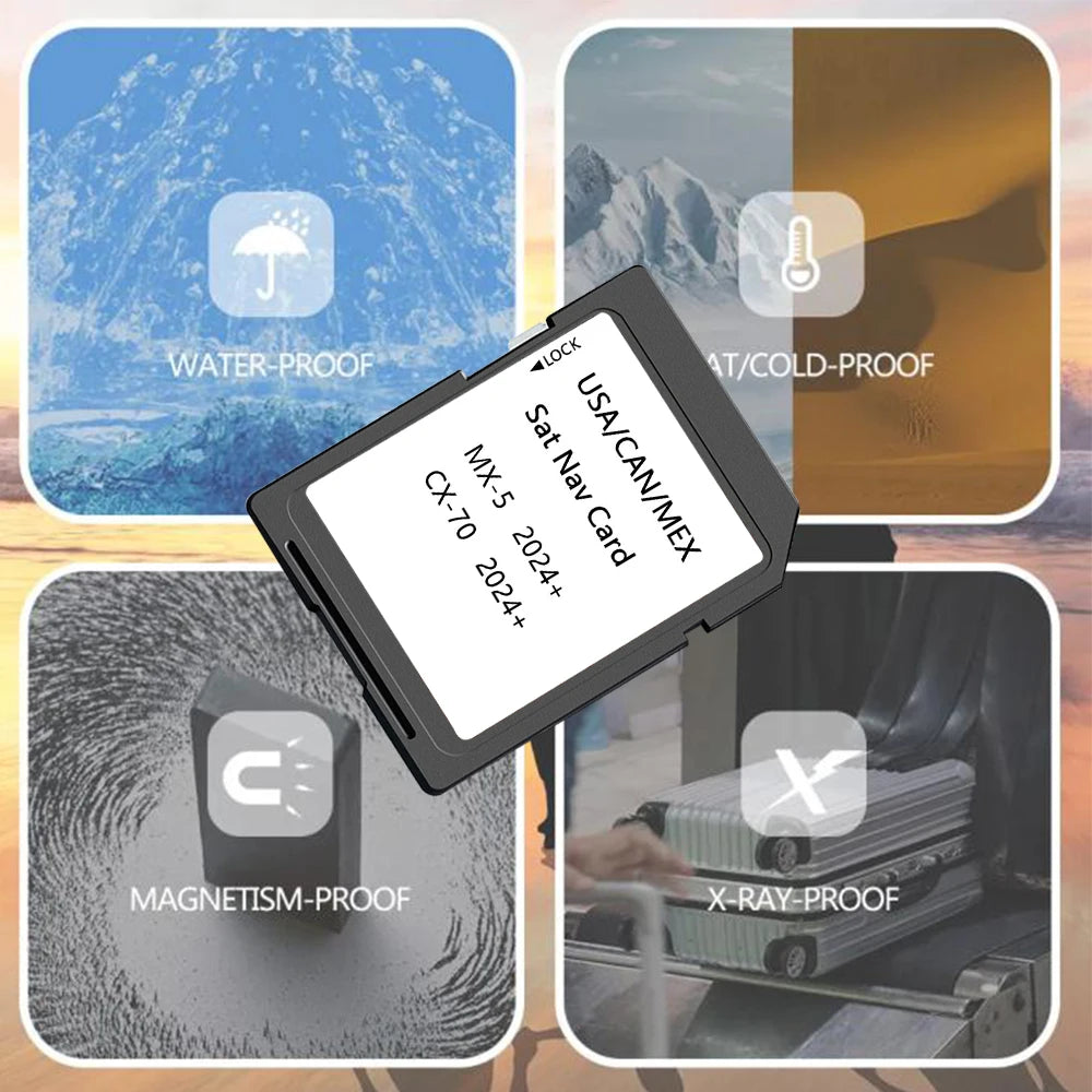 NAVINESA 2024 US CA MX Maps SDCard Mazda CX70 MX5 – Uppdaterad — Uppdaterat 2024 Nordamerika navigations SD-kort designat för att leverera hög hastighet för kartåtkomst och pålitlig ruttledning för Mazda CX‑70 och MX‑5-modeller. Idealisk för in-car navigation, filförvaring och stöd för digitala enheter.