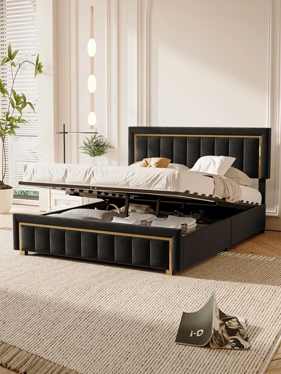 Urban Luxe Sammet Klädd Förvaringssäng 140x200 Svart