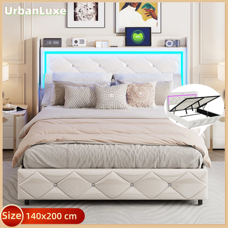 Urban Luxe Klädd Säng 140x200 LED Bar Och Förvaring