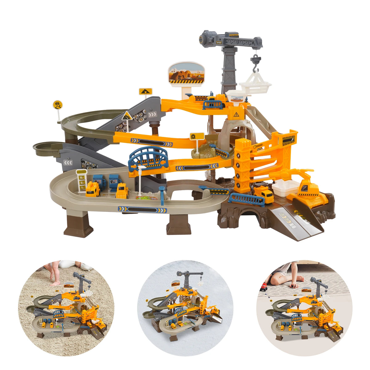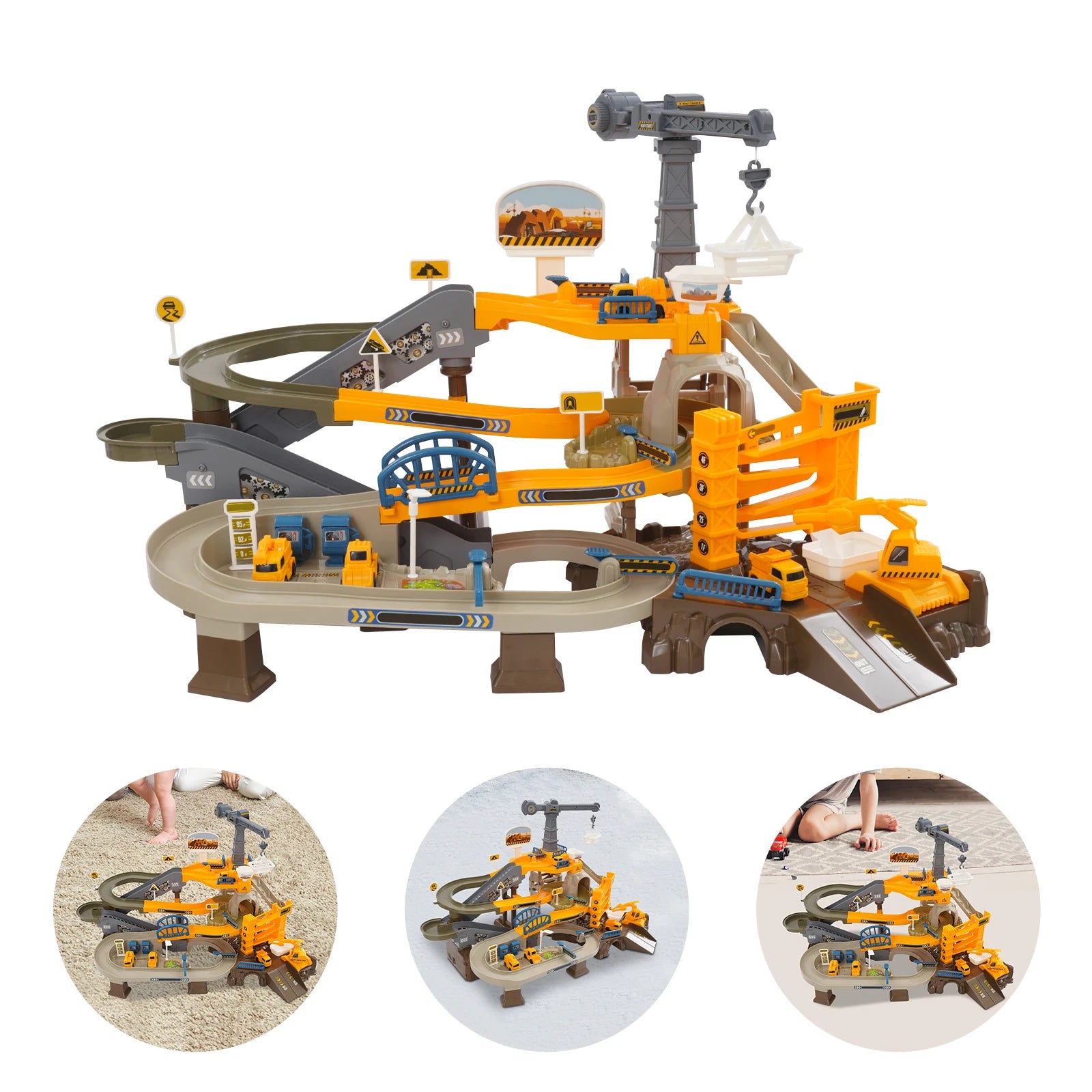Barn kan återskapa en gruvdrift i miniatyr, gräva, lasta och transportera över en dynamisk bana. Bil- och kranaktiviteten hjälper barn att utveckla ansvar och yrkesmedvetenhet på ett roligt, praktiskt sätt. När batterier (3x AA, ingår ej) driver musikfunktionen, tillför livliga ljudeffekter realism och interaktiv glädje till varje lekstund. Den multispirala banan och den elektriska klättringsfunktionen inbjuder barn att jaga, lyfta och styra stenar genom äventyr på flera nivåer, vilket främjar koordination och kreativ problemlösning.