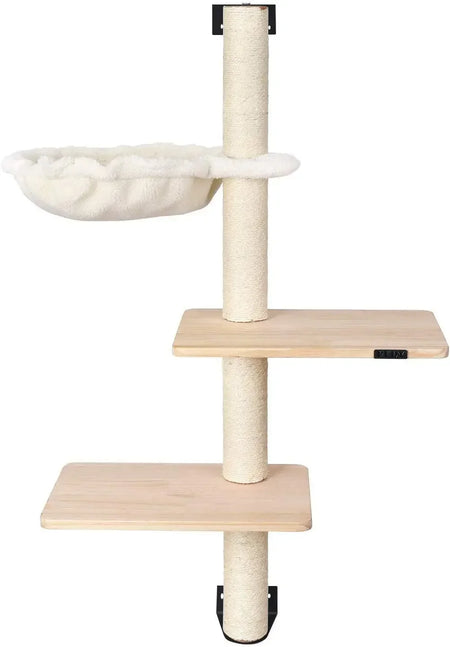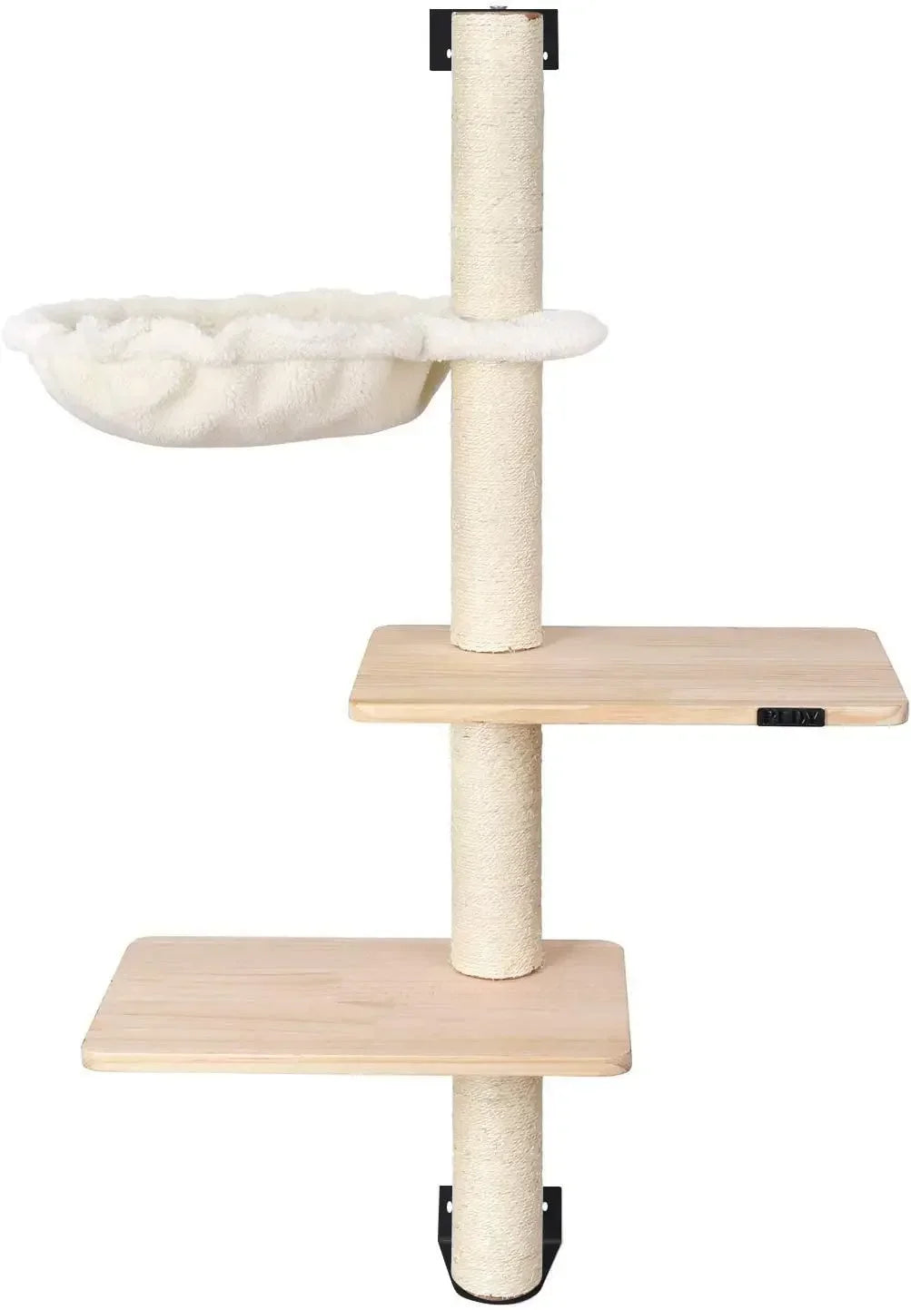 Den solida stolpen med en sisalyta tål även de vassaste klorna, medan två observationsplattformar bjuder in din katt att se vad som händer i hemmet. En plyschhuva och en vadderad viloplats ger din katt en mysig tillflyktsort efter lek. Montering är enkel – följ den medföljande bruksanvisningen som beskriver funktionen för varje reservdel. Väggmonteringsdesignen frigör värdefull golvyta och håller din katt underhållen och engagerad.