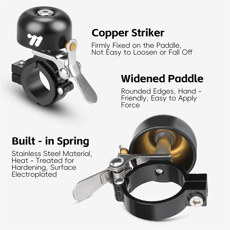 Möt West Biking YP0706060 Retro Cykelringklocka — en lätt kopparringklocka som ger en klar, tydlig ton och vintagecharm till din cykeltur. Designad för både MTB och landsvägscyklar, hjälper denna styrstångshorn dig att kommunicera med fotgängare och medcyklister, vilket gör trafikerade gator och stigar säkrare för alla. Dess ljusa enkeltonsklang är lätt att höra, även i bullriga miljöer, samtidigt som den väger cirka 60 g för att hålla din cykeltur responsiv och ostörd.
