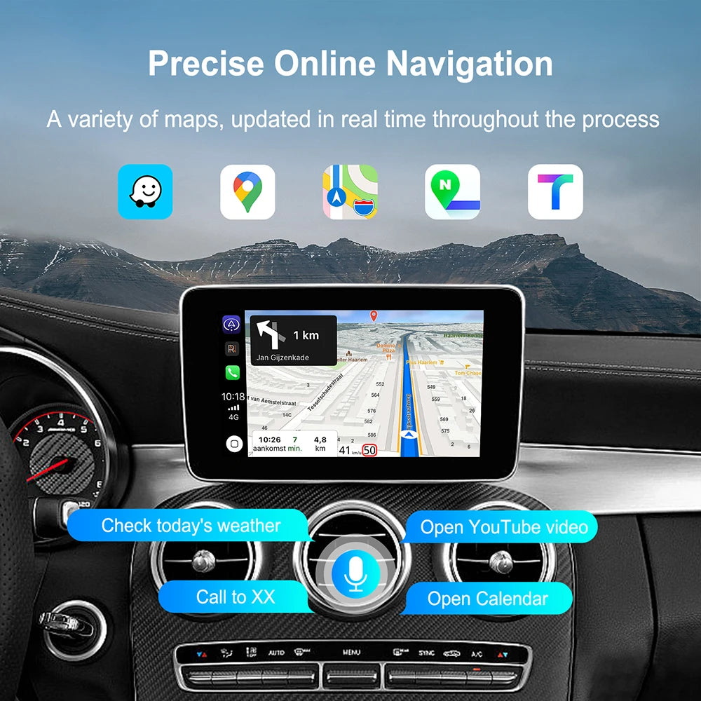 Uppgradera din Mercedes-Benz med Mercedes Benz Wireless CarPlay Android Auto-gränssnittet för NTG5.0 NTG4.5, designat för NTG huvudenheter i E, C, A, B-klass bilar. Denna plug-and-play-modul ger modern smartphone-integration till din fabriksdisplay, vilket erbjuder sömlös trådlös CarPlay och Android Auto, navigationsappar och smartare multimedia-kontroll—utan att klippa kablar eller kompromissa med den ursprungliga instrumentbrädan.