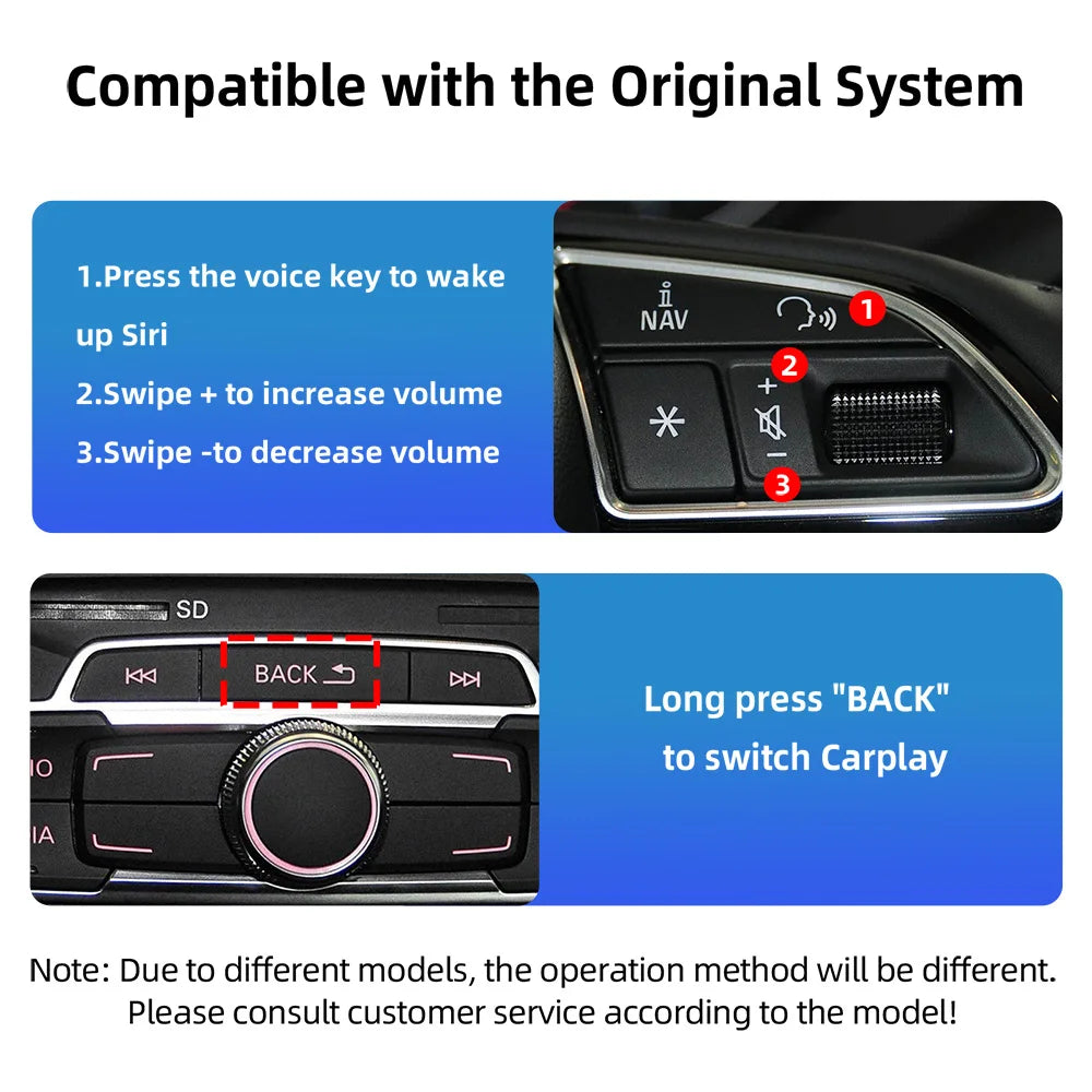 - Kompatibilitet: För att avgöra om ditt fordon kan installera detta Audi CarPlay-gränssnitt, kontakta vår kundsupport med bilder på din bils mittkonsol.