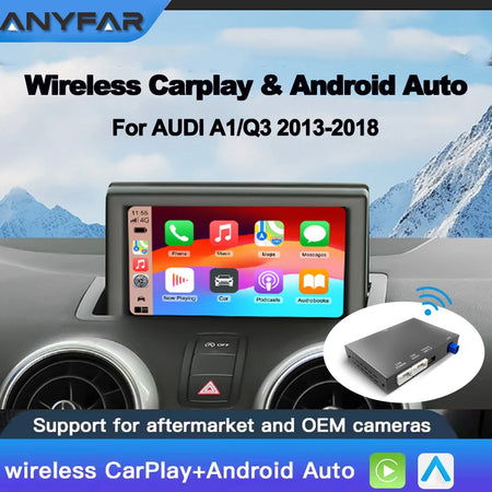 Uppgradera din Audi A1 Q3 (modellår 2012–2018) med ANYFAR Wireless CarPlay/Android Auto-modulen för 6.5"–7" MMI3G. Denna plug-and-play-gränssnitt är speciellt utformad för 6.5"/7" MMI3G-plattformen, vilket ger modern smartphone-integration utan invasiv kablage eller komplexa installationer. Njut av CarPlay, Android Auto, Mirror Link och USB Flash Drive-åtkomst direkt på din fabriksdisplay, vilket håller din instrumentbräda ren och bekant.