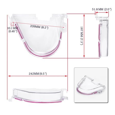 - Material: Klar polykarbonat (hållbar termoplast) plast.