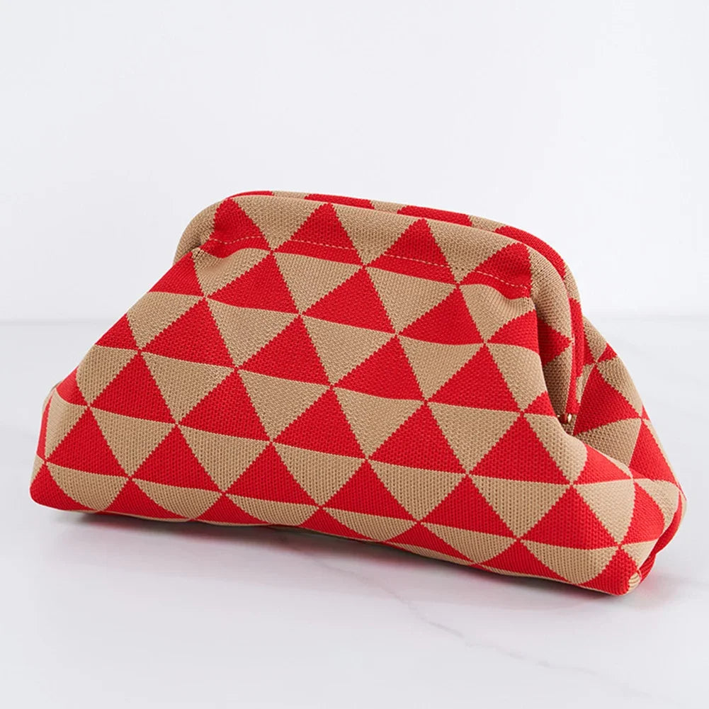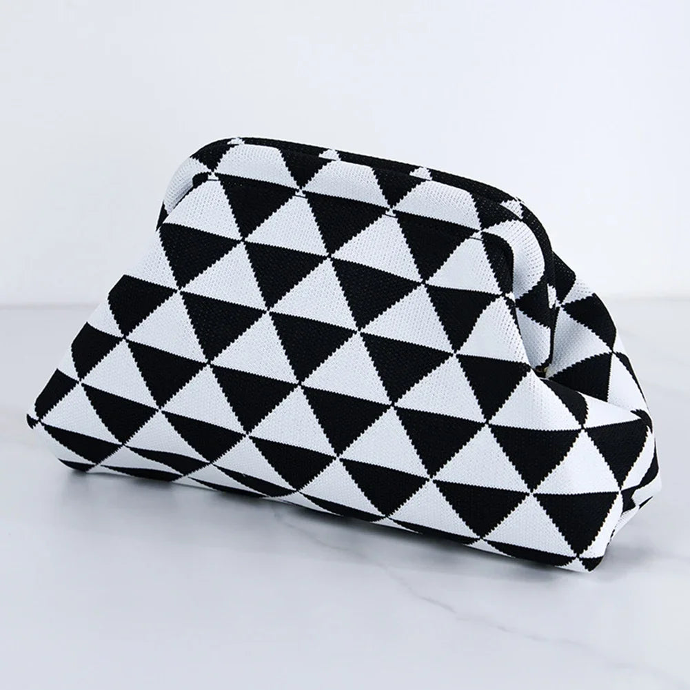 Denna väska är designad för mångsidighet och hållbarhet. Den färgblockerade stickningen ger en samtida accent som fungerar med både avslappnade och festliga looks, och den mjuka stickade hantverk ger en taktil känsla som är trevlig att hantera och lätt att ta hand om. Använd den som en chic clutch för kvällar, eller som en kompakt organisatör för dagsutflykter—den viks in i din outfit utan bulk och håller föremål snyggt inom räckhåll.