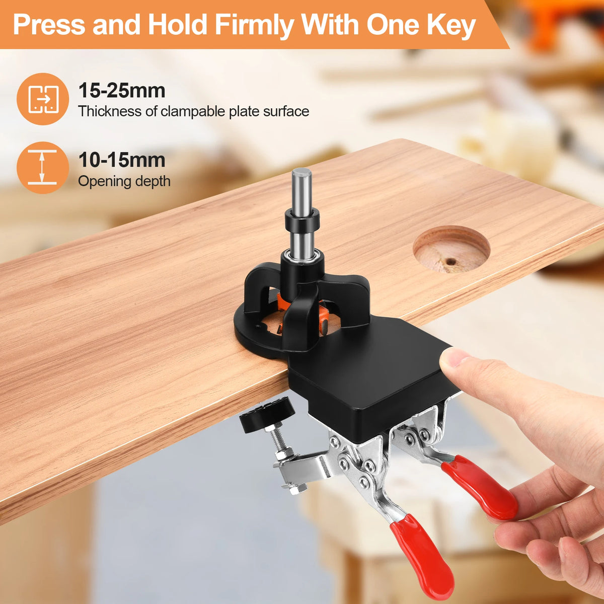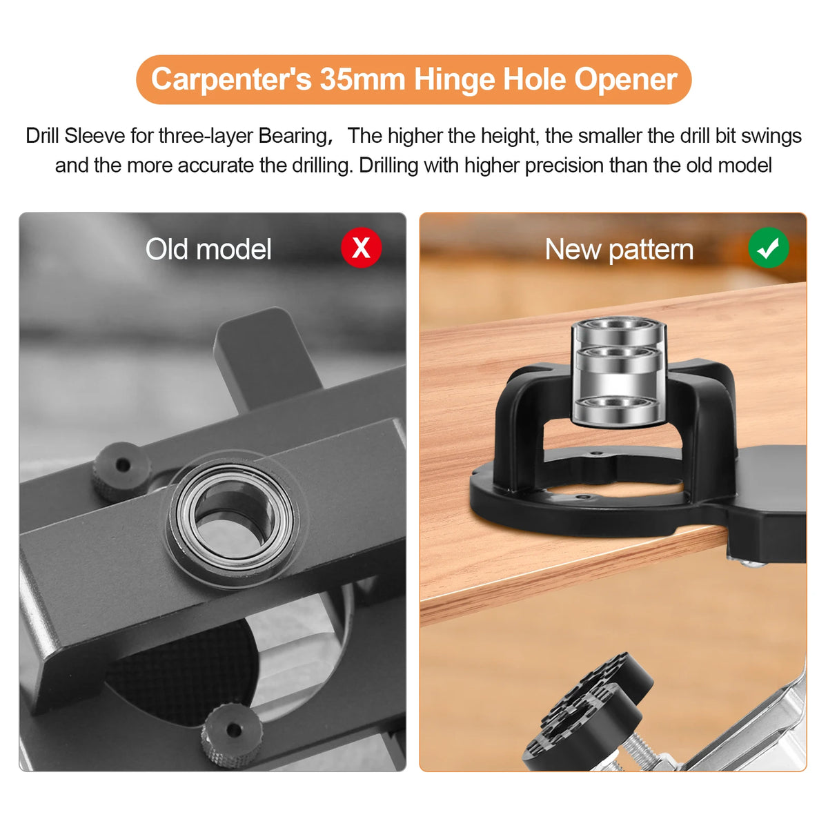 Förbättra din installation av skåpsbeslag med 35mm dold gångjärn jig-kit med aluminium dubbelklämma från Jugacool. Denna precisionsjig ger stabil justering och upprepbara resultat för dolda 35mm gångjärn. Den robusta aluminium dubbelklämman håller tätt vid tung användning och höga temperaturer, vilket säkerställer att dina gångjärnshål alltid är perfekt placerade. Borrhylsan stöder övre, mellersta och nedre lager med en total höjd på 2 cm, vilket dramatiskt minskar borrbitsvickning och ökar borrnoggrannheten jämfört med äldre modeller. Den rymmer håldjup på 10-15 mm och klämmer fast brädans tjocklek från 15-25 mm, vilket täcker vanliga material för skåpsdörrar. Hålmarginalen är justerbar från 3-7 mm för exakt förskjutning—lossa skruven, använd den inbyggda positionsskalan och lås fast den rostfria justeringsplattan för upprepbara resultat. Byggd för snabb installation och pålitlig prestanda hjälper detta kit dig att uppnå rena, professionella gångjärn med mindre ansträngning.