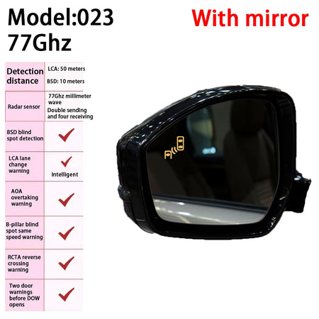 Två huvudvisningsalternativ ger dig flexibilitet: en linsvisning där varningsljuset är på linsen själv, eller en in-car visning som visar varningar inuti det triangulära fönstret. Denna anpassningsförmåga låter dig skräddarsy systemet efter ditt fordon och dina körpreferenser utan att kompromissa med estetik eller synlighet. Systemet är byggt för verklig körning, inklusive nattförhållanden och varierande väder, och stöder anpassning av mönster om du skickar dina originalspegel till fabriken för anpassning av laser varningsljusmönster—fortfarande till samma pris.