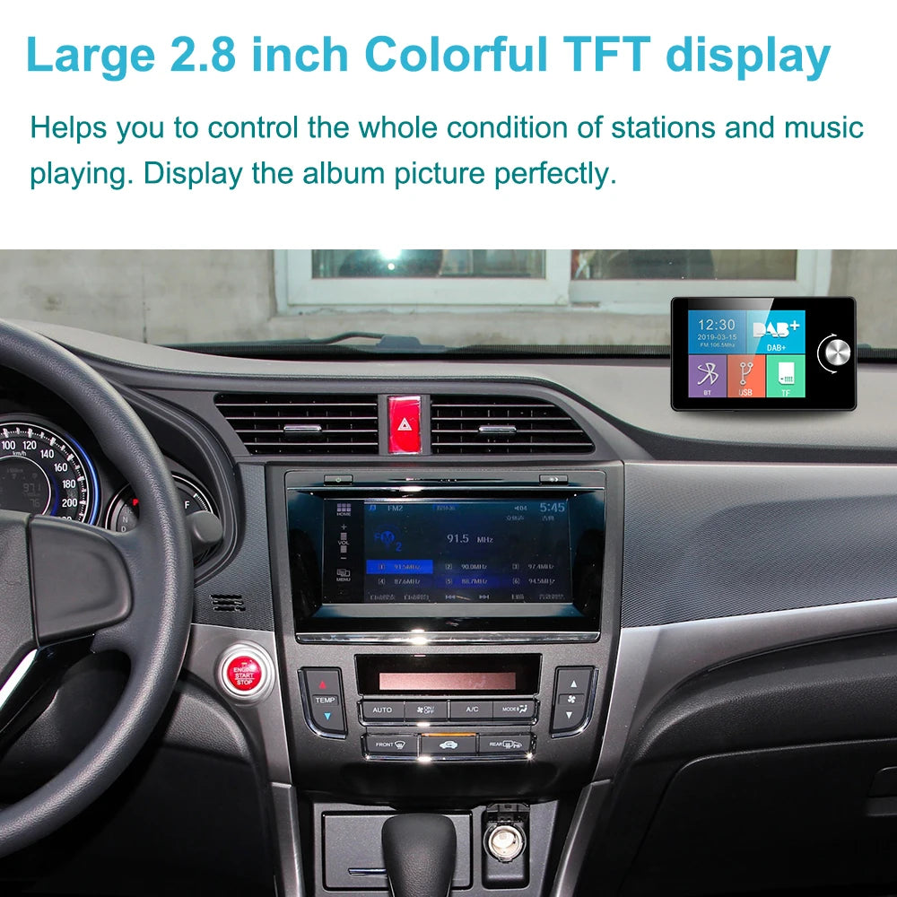 DAB+ ile kristal netliğinde dijital sesin tadını çıkarın ve sınırsız istasyon listesine erişin. Kompakt 2.8" renkli ekran, bilgileri bir bakışta okunabilir tutar ve gündüz veya gece sürüşüne uygun ayarlanabilir parlaklık sunar. Telefonunuzdan Bluetooth ile müzik akışı yapın, bir USB sürücüsünden veya 64GB'a kadar bir microSD (TF) karttan parçalar çalın ve esnek dinleme için AUX cihazlarını bağlayın. Ünite ayrıca AUX çıkışı ile bir FM verici olarak da işlev görür ve aracınızdaki mevcut hoparlörlere temiz, gürültüsüz ses iletimi sağlar.