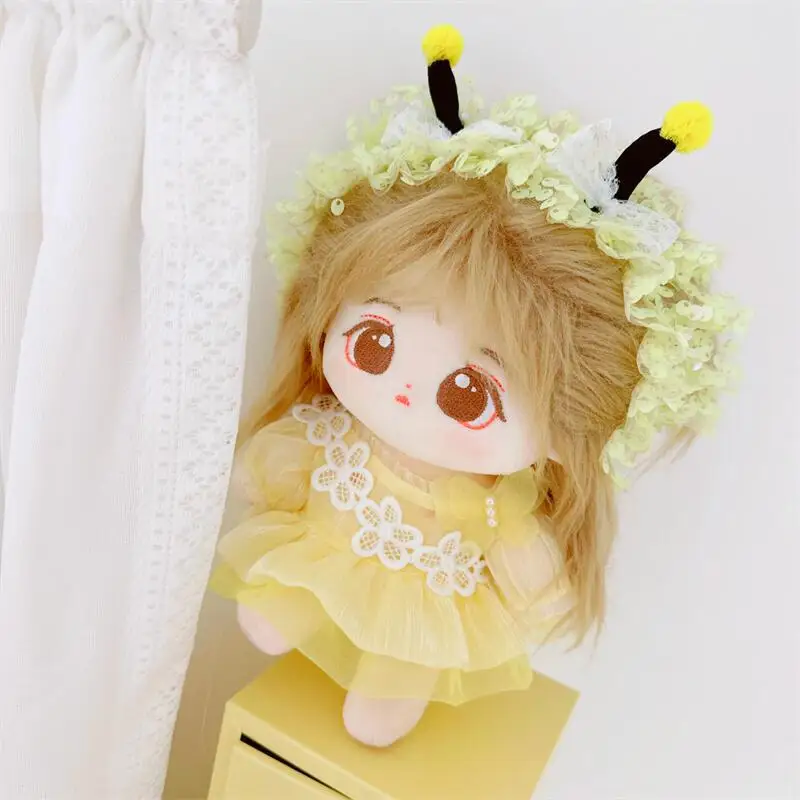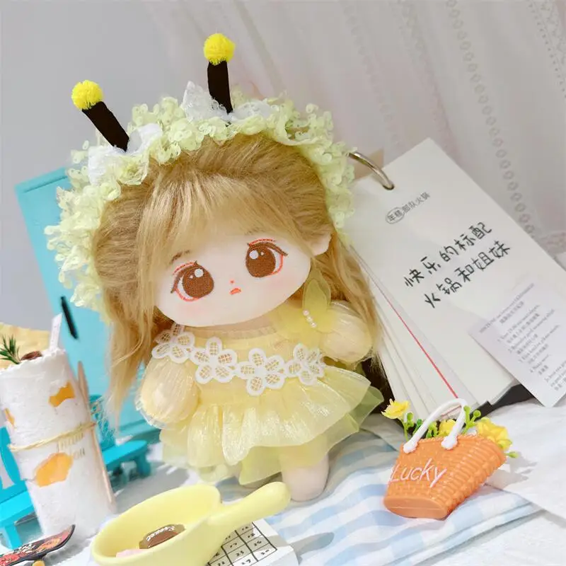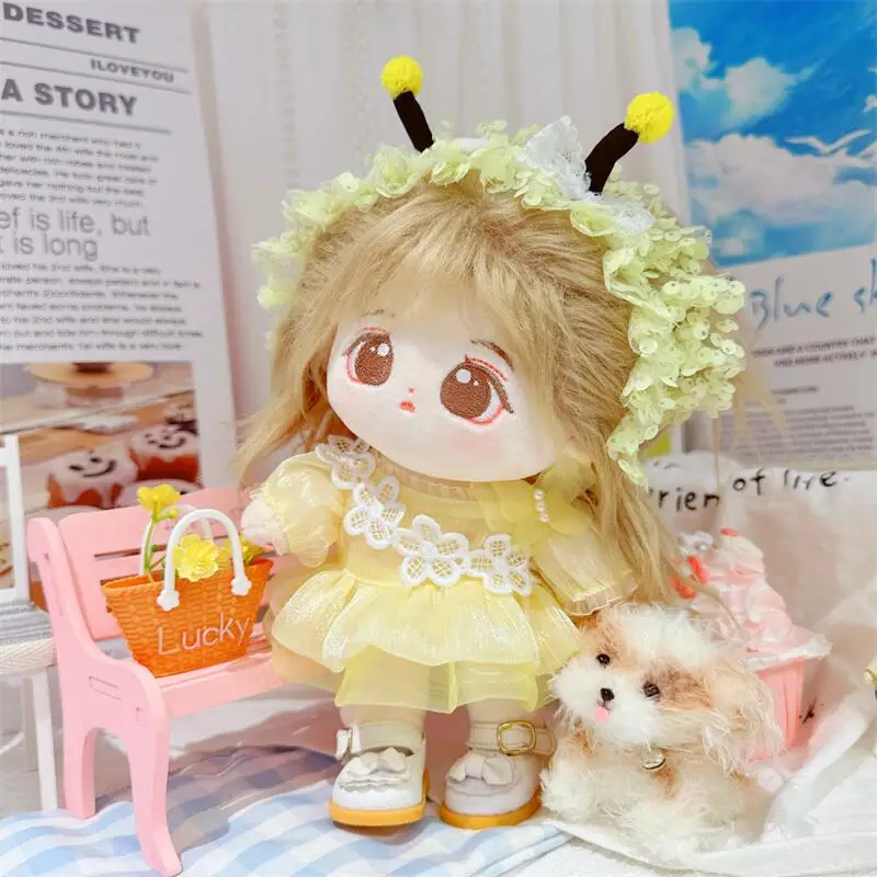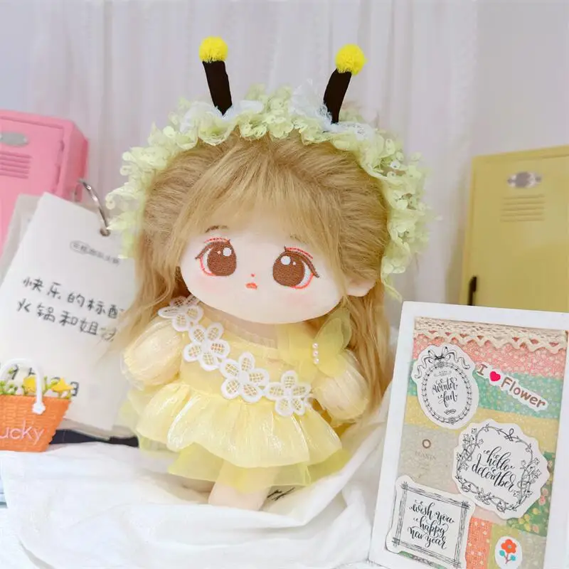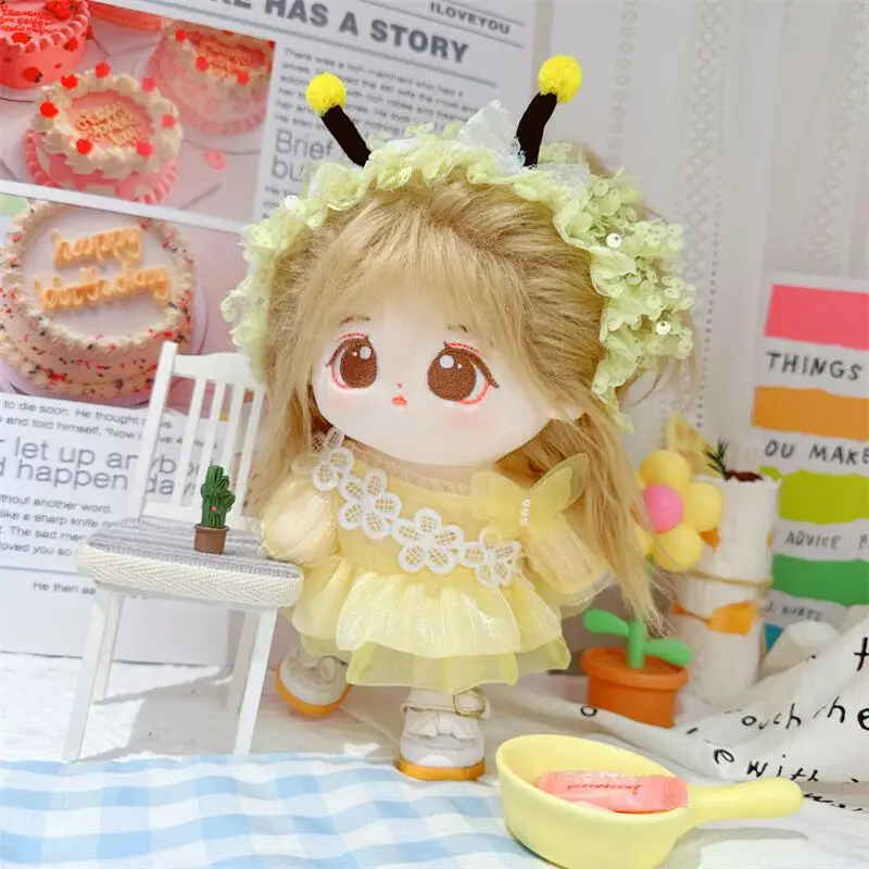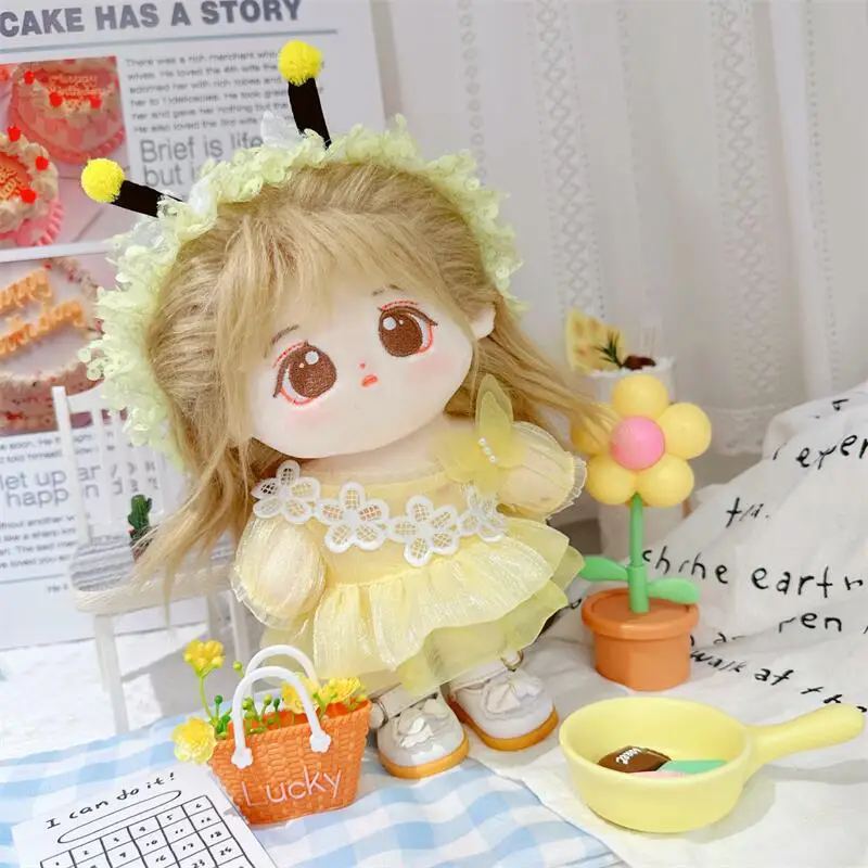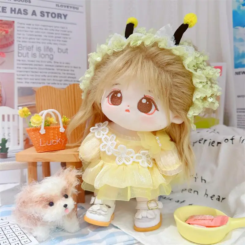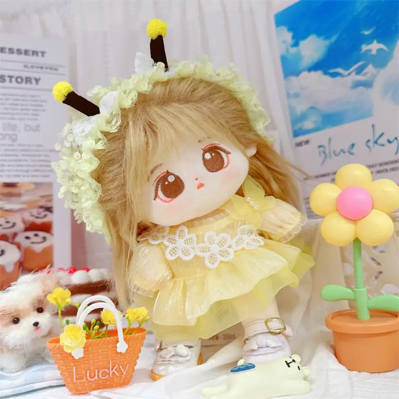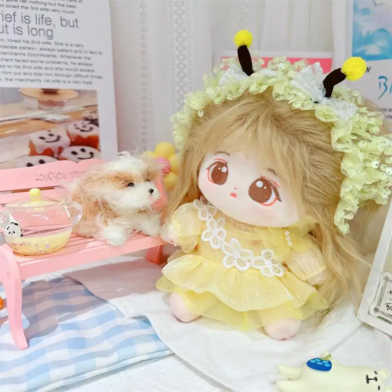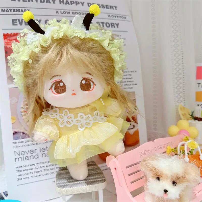 20cm sevimli iyi kız pamuk peluş bebek kawaii sarı payet elbise takım elbise idol bebek kıyafet aksesuarları anime yumuşak çocuk oyuncakları hediyeler