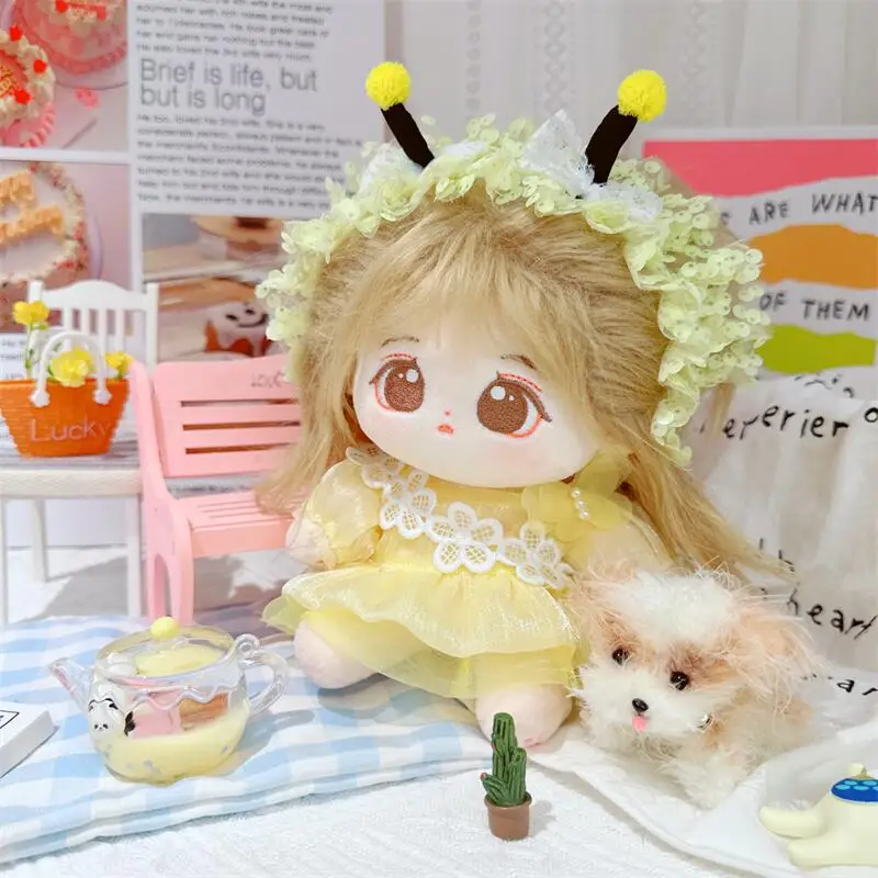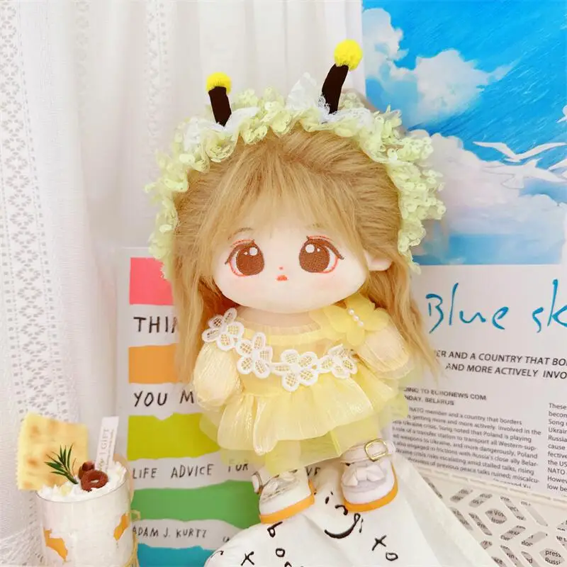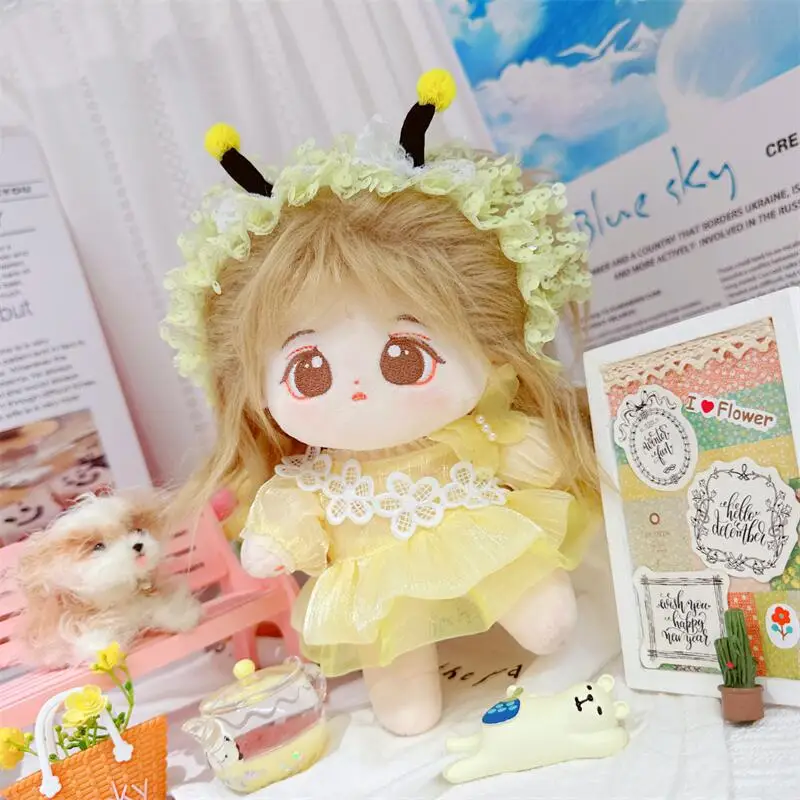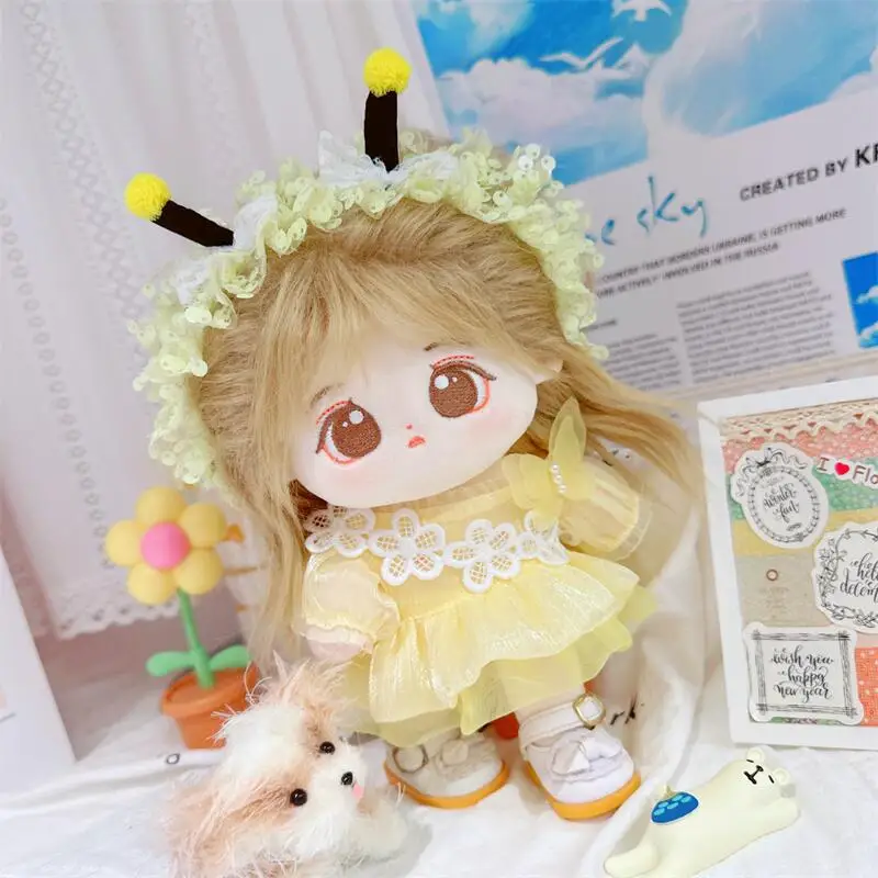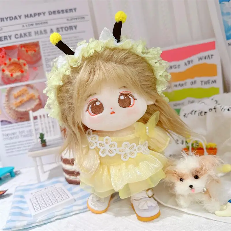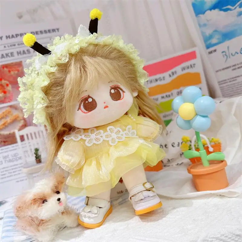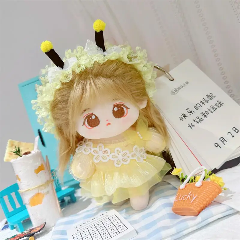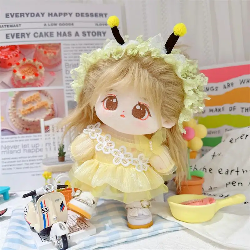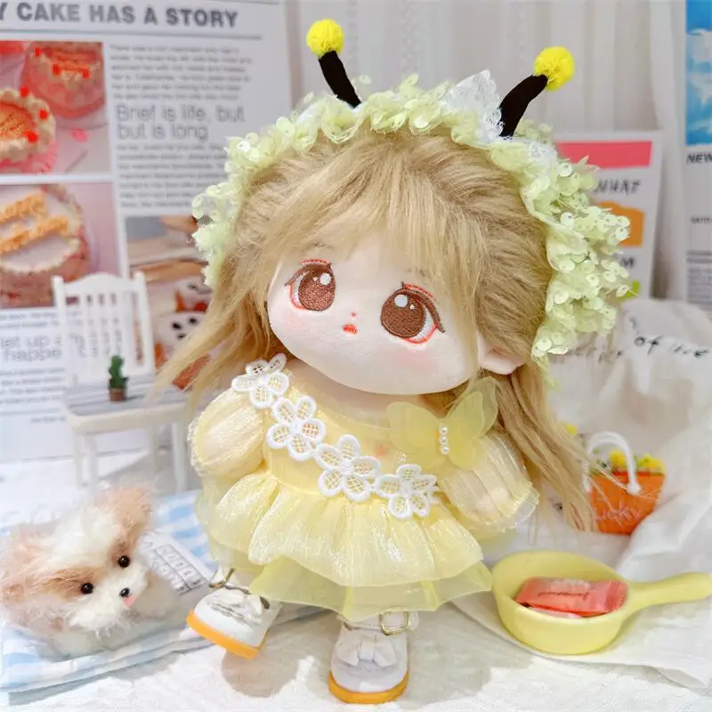 20cm sevimli iyi kız pamuk peluş bebek kawaii sarı payet elbise takım elbise idol bebek kıyafet aksesuarları anime yumuşak çocuk oyuncakları hediyeler