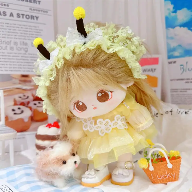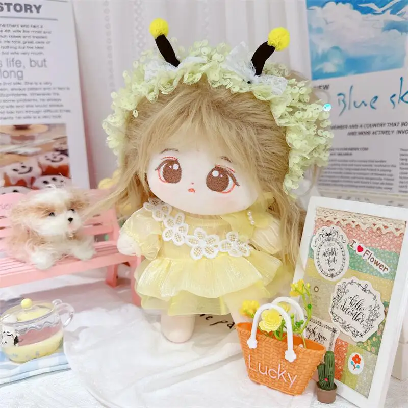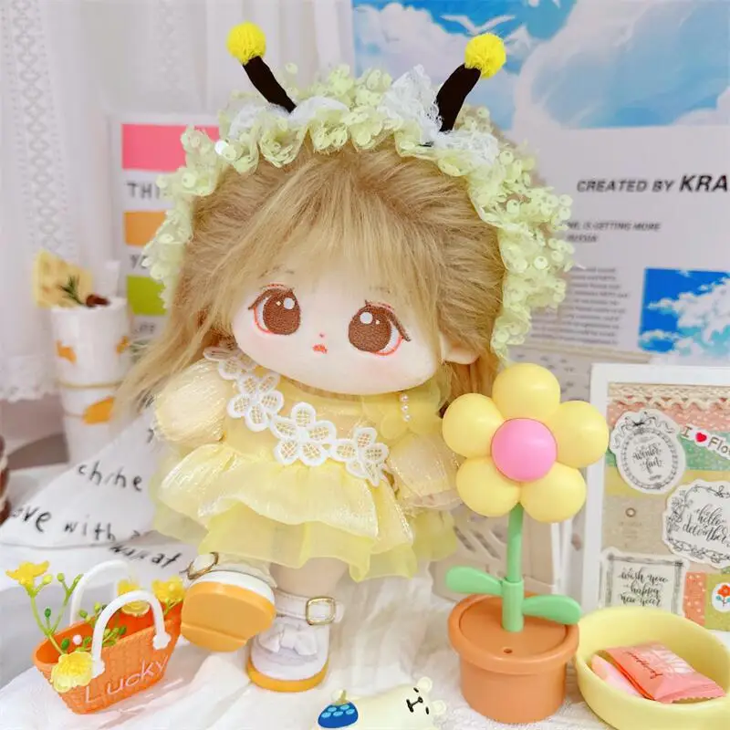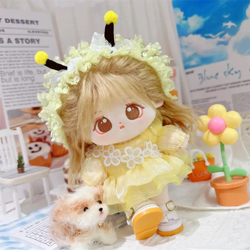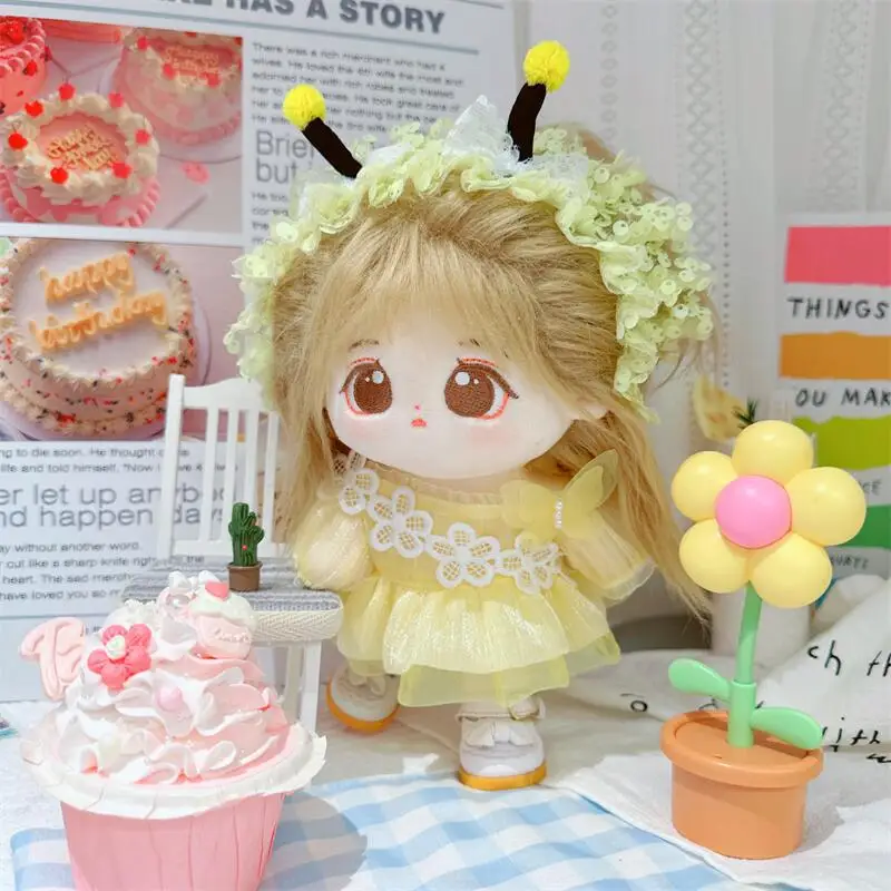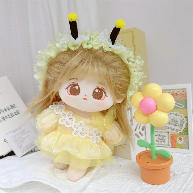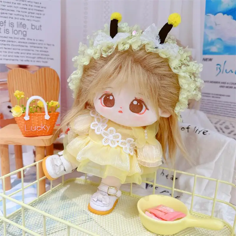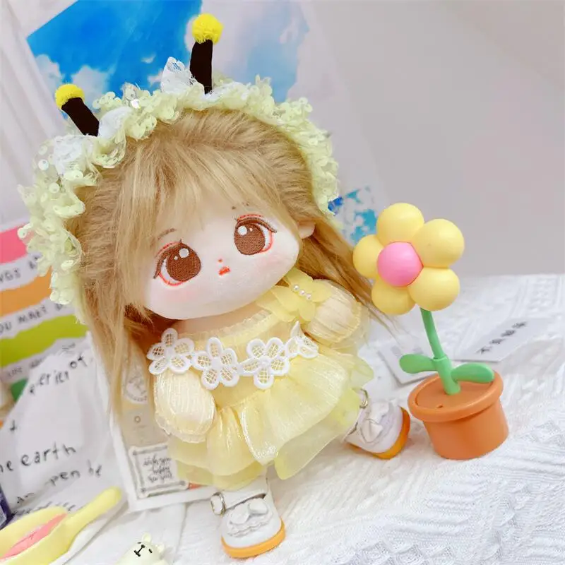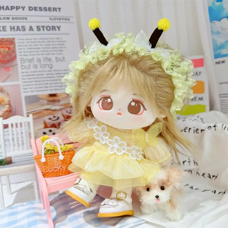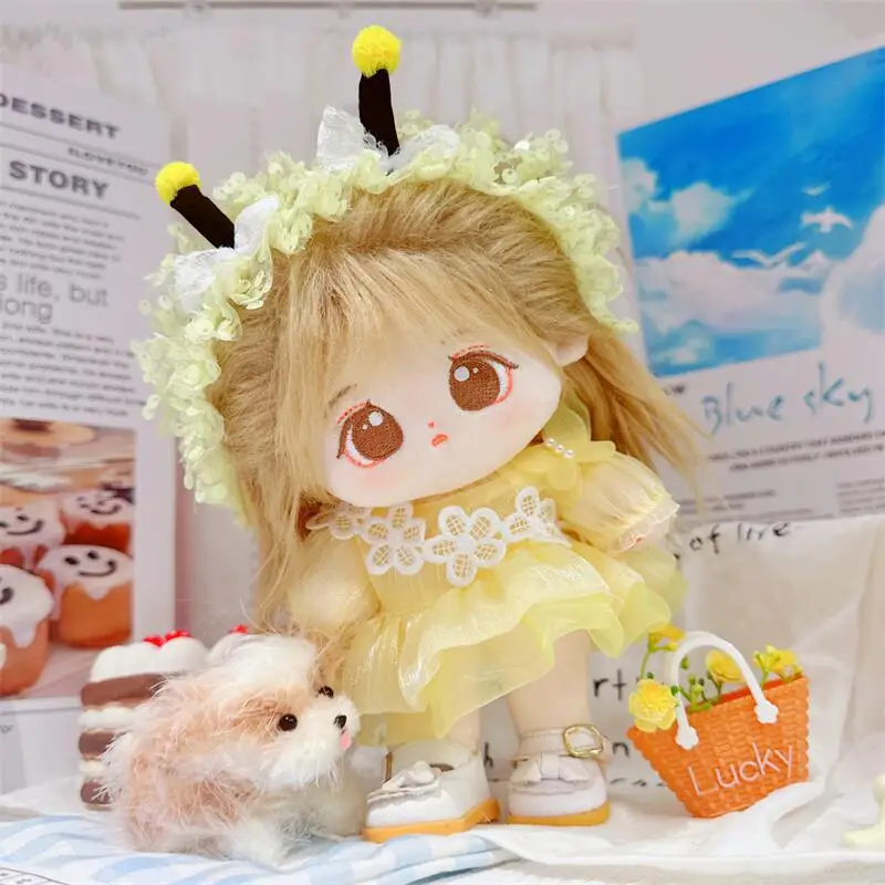 20cm sevimli iyi kız pamuk peluş bebek kawaii sarı payet elbise takım elbise idol bebek kıyafet aksesuarları anime yumuşak çocuk oyuncakları hediyeler