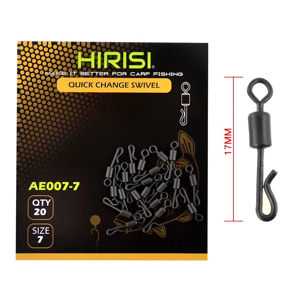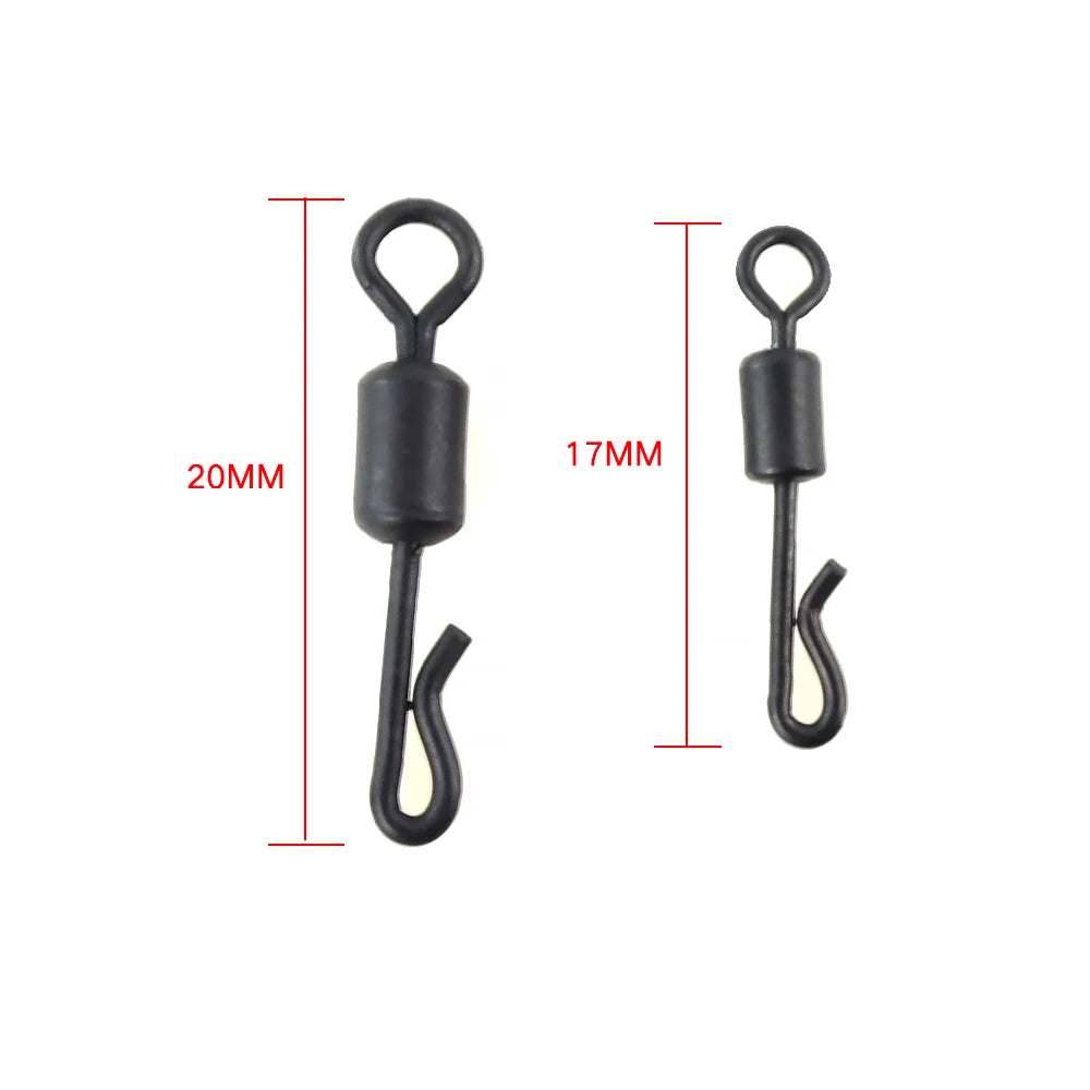 - Mat siyah renkte 20 parçalık Quick Change Carp Swivels seti
