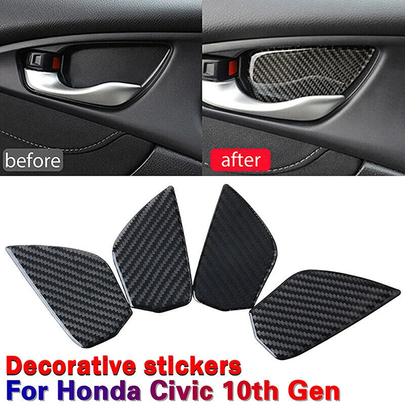Honda Civic 10. Nesil için Kapı İç Kolu Kase Kapağı Kaplama Çıkartması, Gerçek Karbon Fiber
