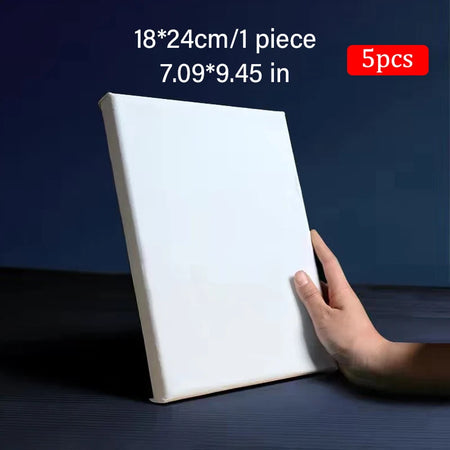 - Ahşap germe çubukları üzerinde önceden gerilmiş 5 adet kare tuval seti