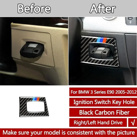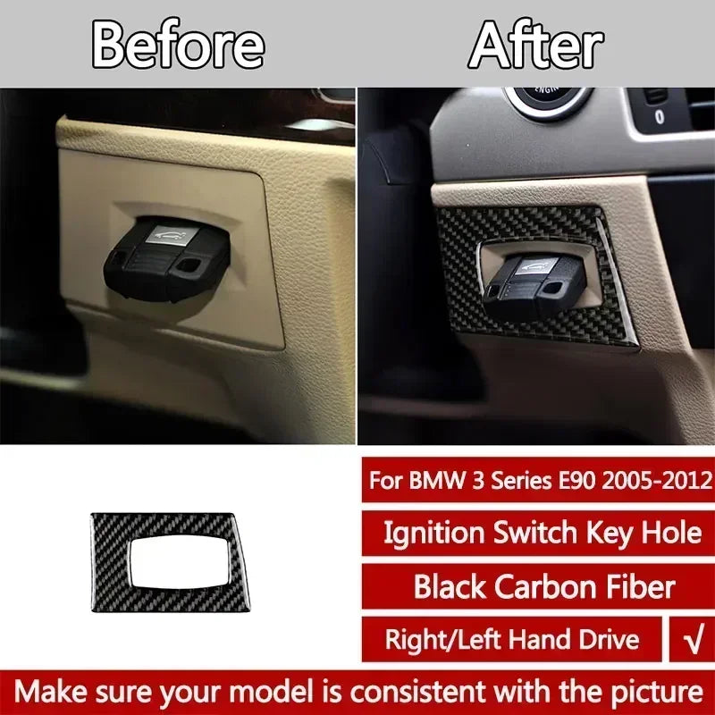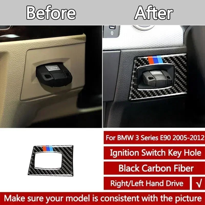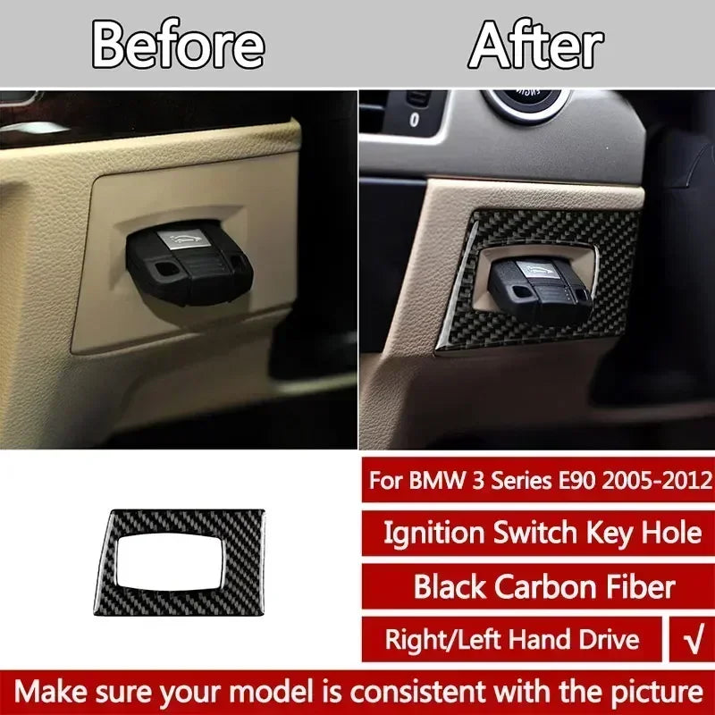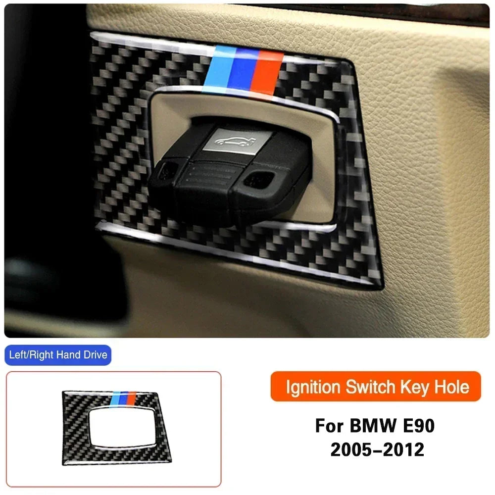- 1 x BMW E90 İç Karbon Fiber Kontak Anahtarı Delik Kapağı Trim Sticker