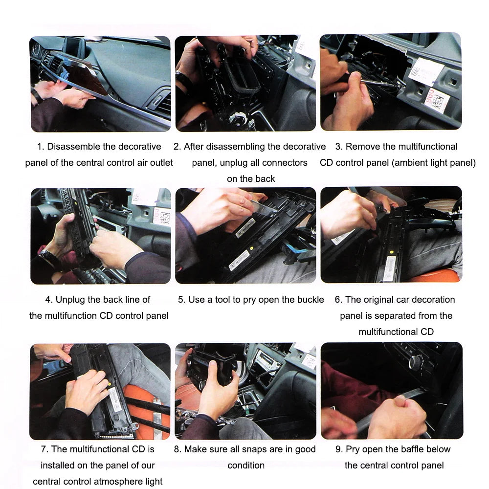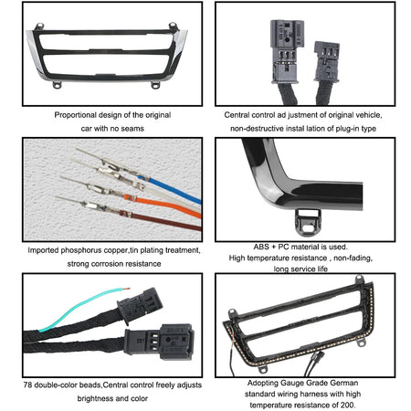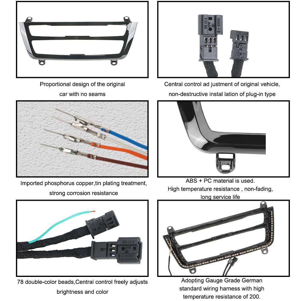 BMW 3 Serisi F30 F31 Orta Konsol LED Kaplama Paneli, Piyano Siyah Plastik, İç Kaplama Yükseltmesi