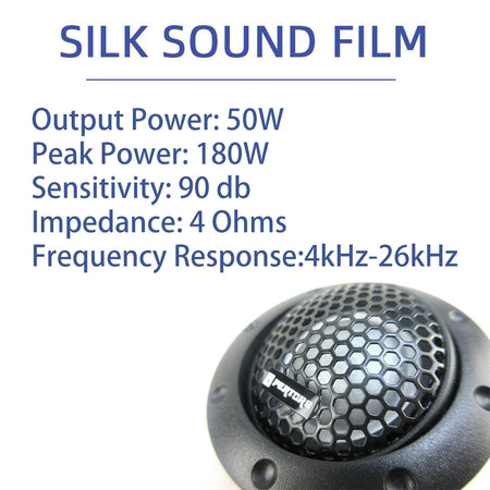 Enhance your car audio with the KUERL DDT-S30 Silk Dome Tweeters. These compact, high-fidelity tweeters deliver crisp, detailed high frequencies across 4 kHz to 26 kHz, bringing brighter, more accurate sound to your ride. The silk dome design provides a smooth response that reduces harshness, giving you a more enjoyable listening experience whether you’re cruising or commuting. Built with a durable ABS housing and a 12 V system design, the DDT-S30 is ready to elevate your audio setup with reliability and style.