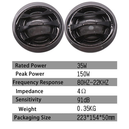 Upgrade your car audio with KUERL HI-520 Car Tweeters with Filter. These 4 Ohm, 35W HiFi tweeters deliver crisp, detailed highs with a smooth silk-film dome for a refined listening experience. The aluminum alloy housing adds durability and helps minimize unwanted resonance, so you hear cleaner treble even at higher volumes. With a wide frequency response from 80 Hz to 22 kHz and a sensitivity of 91 dB, the HI-520 brings sparkle to vocals, cymbals, and instrumental detail without sounding harsh.