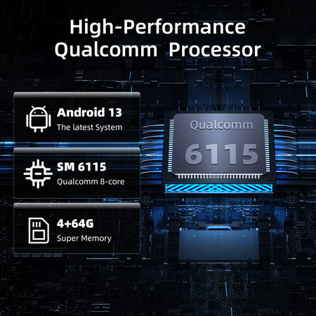• Quad‑core performance (Qualcomm 6115) with 4G LTE — Smooth, responsive multitasking and reliable cellular connectivity for navigation and calls.