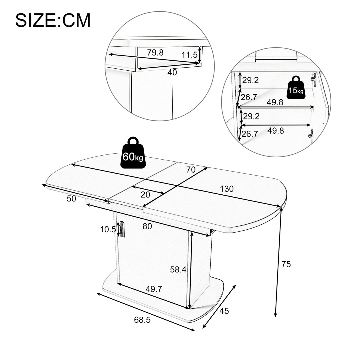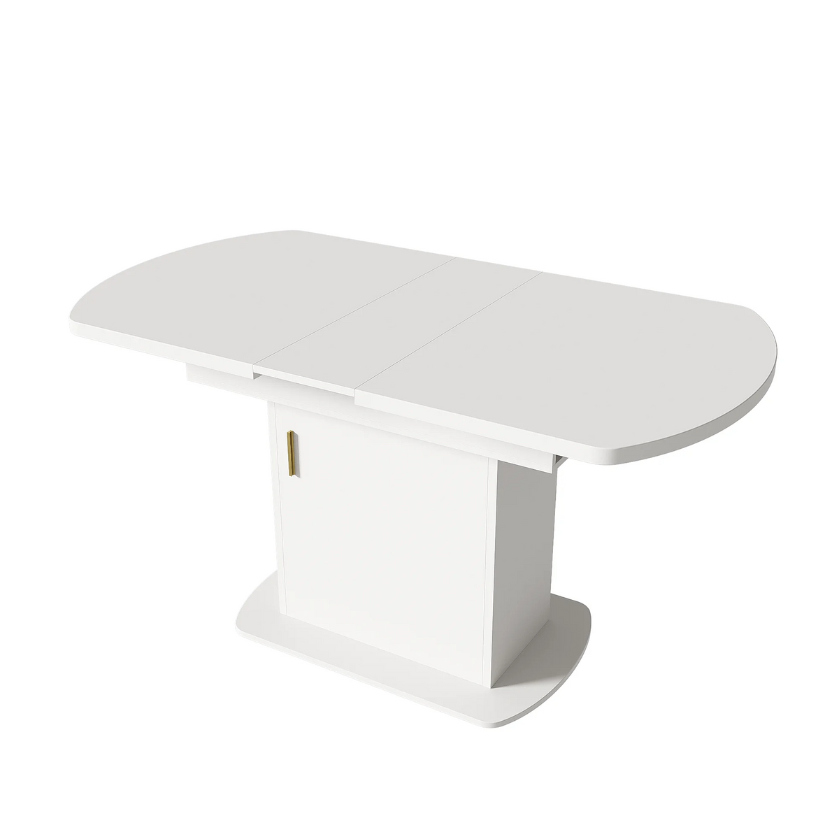 İki ile Üç Kişilik Uzatılabilir Oval Beyaz Yemek Masası Depolama