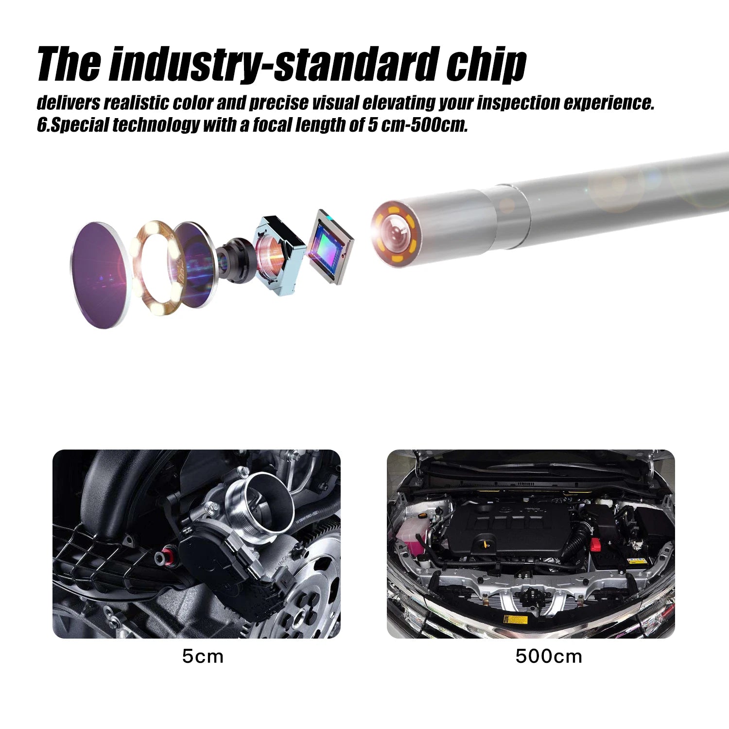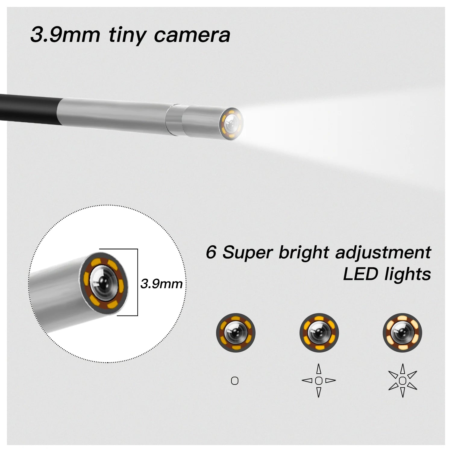- Karanlık alanları aydınlatmak için 6 ayarlanabilir LED'i kullanın ve uzatılmış erişim için farklı tel uzunluklarına (2M, 5M, 10M) geçin.
