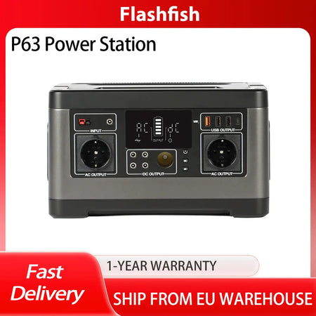 FlashFish P63 Taşınabilir Güç İstasyonu 520Wh Li-ion Pil, 500W AC Çıkışı, 5 DC, 4 USB, Güneş Enerjisi Jeneratörü ile