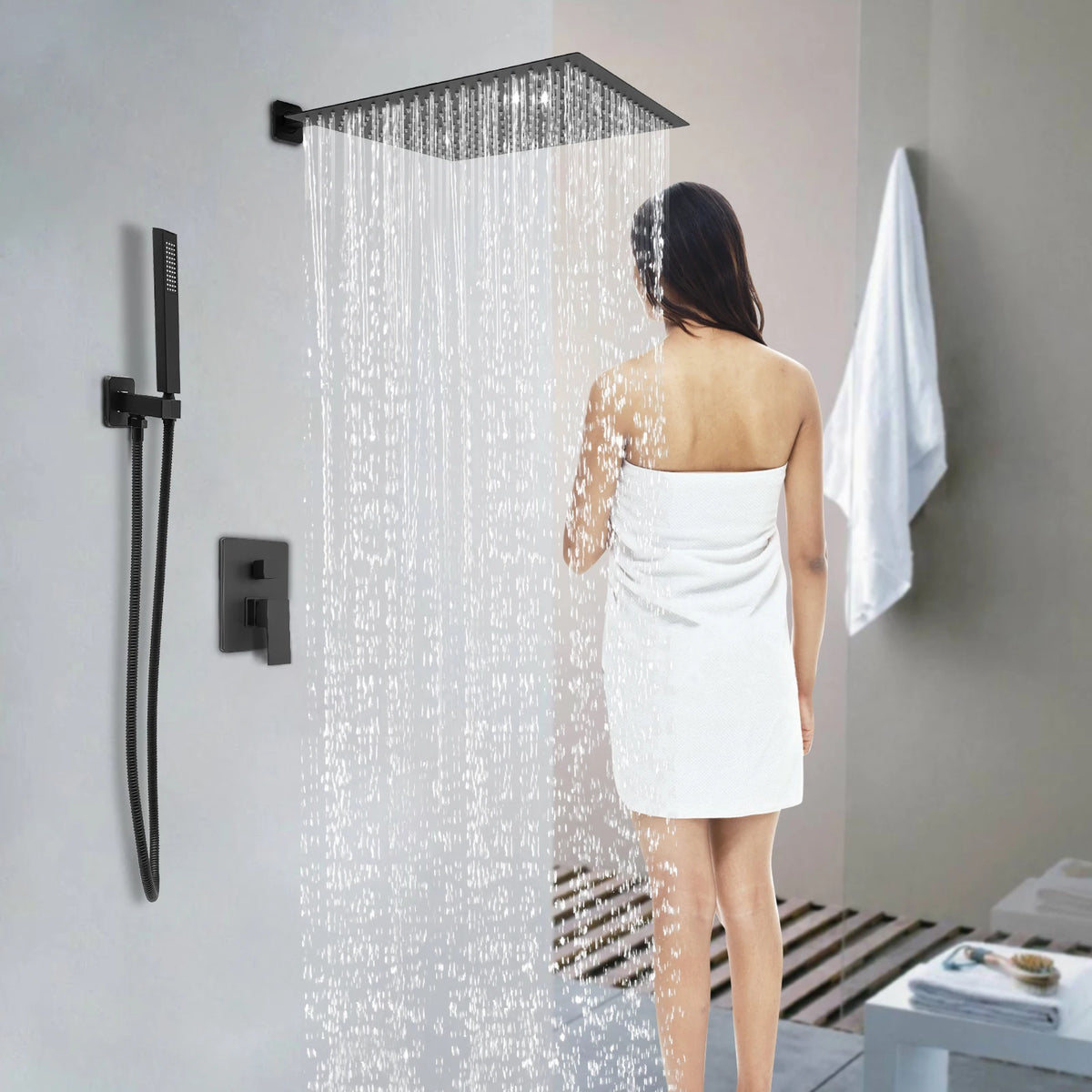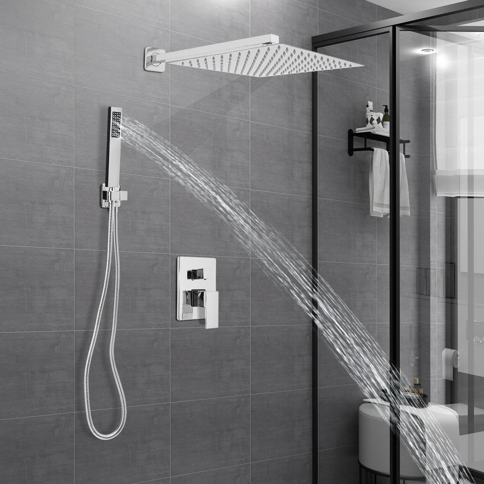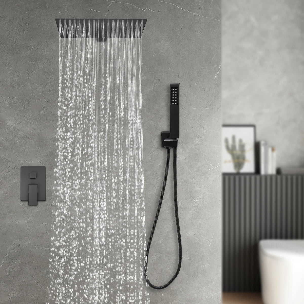 Duvara Monte Edilen Gömülü Duş Seti Gümüş Siyah