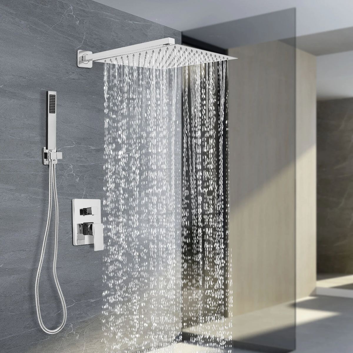 - Kare duş şekli, çeşitli banyo stillerine uygun modern, geometrik bir görünüm sunar.