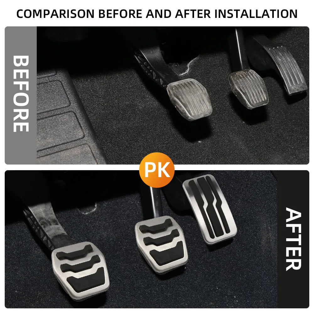 - Basit montaj rehberi: gaz pedalı kapağı takılır; fren pedalı kapağı sıkı ve güvenli bir uyum için orijinal lastiğin çıkarılmasını gerektirir—en iyi sonuçlar için adımları izleyin.