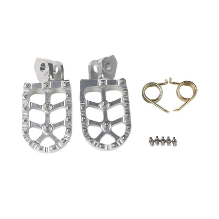 Yamaha XT660X Tenere ve Coleman CT200EX'inizi bu yüksek dayanımlı alüminyum ayak dayanakları ile yükseltin. Dövme T7 7075 alüminyum alaşımından üretilmiş olup, olağanüstü dayanıklılık, sağlamlık ve araziye uygun tutuş sağlarlar. Dişler sertleştirilmiş çeliktendir, aşınmaya karşı dayanıklıdır ve uzun ömür için çıkarılabilir ve değiştirilebilir. Yamaha XT660X ve Coleman CT200EX modelleri (2005–2009) ile uyumludur, bu ayak dayanakları motosikletinizin orijinal yayı kullanılarak kolayca takılır—lütfen montaj için mevcut yayı yeniden kullanın.
