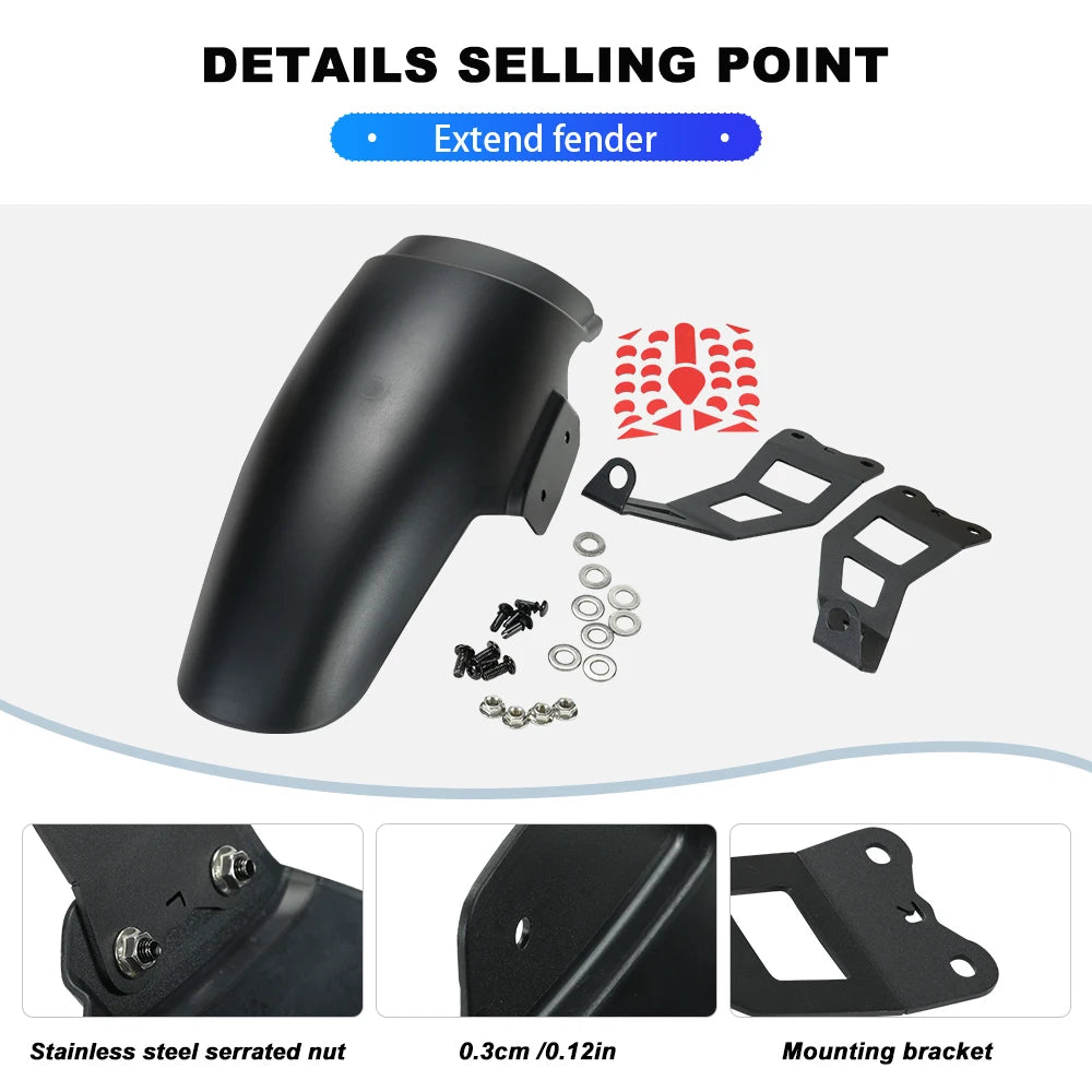 Fonksiyonel, dayanıklı ve kolay montaj için tasarlanmış sağlam bir Çamurluk Uzatması ile sıçrama ve kiri durdurun. Islak ve arazi koşullarında daha iyi koruma talep eden sürücüler için ideal bir yükseltmedir, kritik bileşenlerin daha uzun süre temiz kalmasına yardımcı olur ve motosikletinizin görünümünü korur.