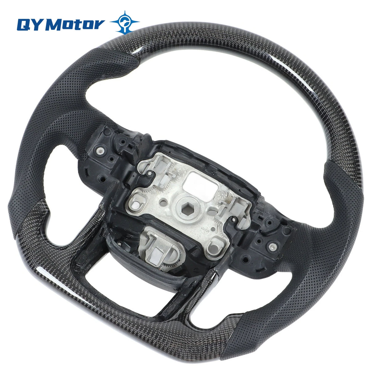 Upgrade your Land Rover interior with the Land Rover Range Rover Sport Heated Carbon Fiber Steering Wheel with Leather. This premium steering wheel blends a race-inspired carbon fiber finish with plush perforated black leather for a refined, tactile driving experience. The round top with a flat bottom (D-shaped) design delivers improved grip and a sportier feel, helping you maintain control during spirited drives while keeping comfort for daily use.