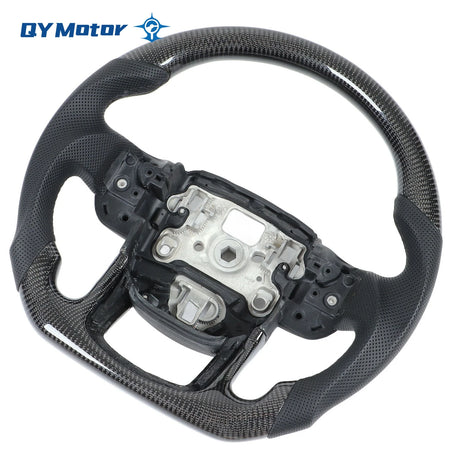 Featuring a carbon fiber exterior and black perforated leather, this wheel combines durability with luxury. The black stitching adds a subtle, sophisticated contrast. A paddle cutout is included (paddles not included) for seamless integration with paddle shifters. Heated option is available, allowing you to choose a comfort level that suits your climate and driving style. If you’re unsure which variant to buy, you can reference our model list to select the correct option.