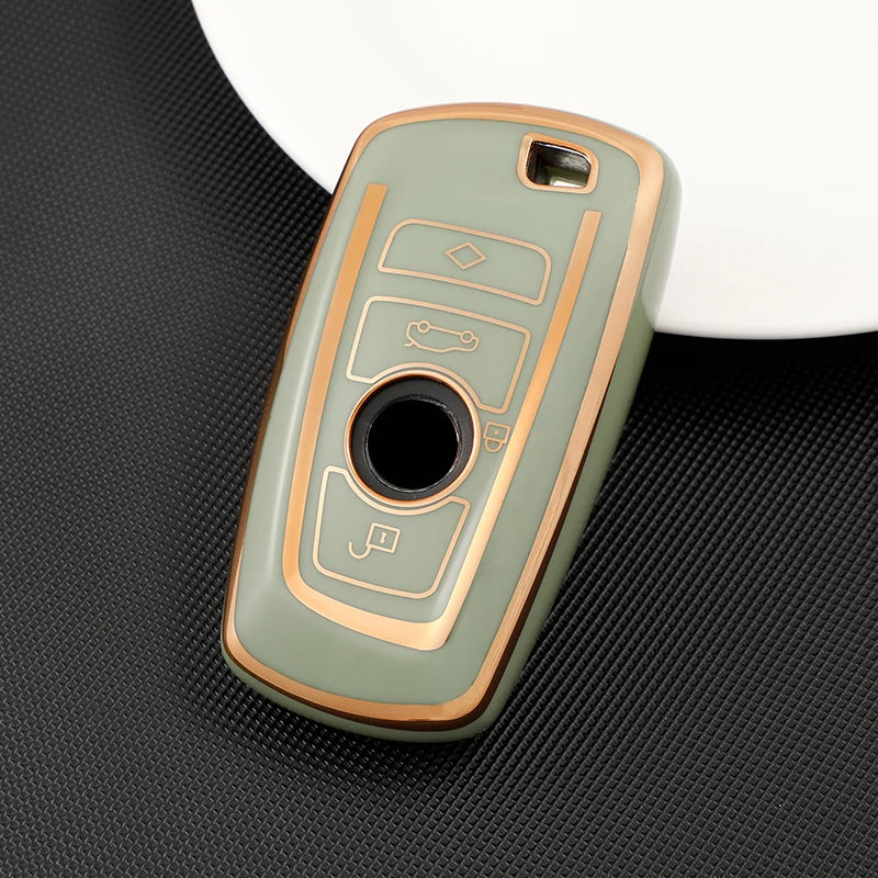 Bu yüksek kaliteli TPU Anahtar Kılıfı Kapak ile BMW anahtarınızı şık bir şekilde koruyun; 1/3/5/7 Serisi ve X1 X3 X4 X5 anahtar kumandalarına uyacak şekilde tasarlanmıştır. Güvenli ve çevre dostu TPU'dan üretilmiş olup, anahtarınızı çiziklerden, darbelerden ve günlük aşınmalardan korurken orijinal görünümünü korur. Nefis işçilik, sıkı bir uyum ve düzenli kullanımla solmayan renkli bir yüzey sunar. Takması ve çıkarması kolaydır, ayrıca günlük kullanım için rahat bir tutuş sağlar. Mükemmel uyum için satın almadan önce anahtarınızın şeklini resmimizle karşılaştırınız.