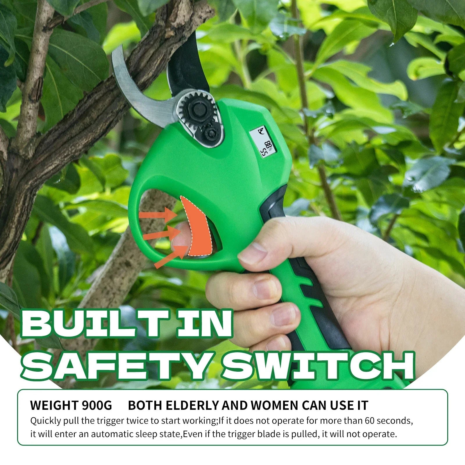 OLOEY Elektrikli Budama Makası SC-8604/LD-8604 ile tanışın — bahçelerde, meyve bahçelerinde ve peyzajlarda zahmetsiz kesim için tasarlanmış kablosuz, yüksek performanslı bir budama aracı. 16.8V şarj edilebilir lityum batarya ve sağlam 500W fırçasız motor ile güçlendirilmiş, 28mm çapına kadar sabit, hassas kesimler sunar. Kaymaz tutma yeri, uzun süreli kullanım sırasında elinizi rahat ve güvenli tutar, metal gövde ise günlük budama görevleri için dayanıklılık sağlar. Budama bıçağı kurulumu, keskinlik ve pas direnci için üst bıçağında yüzey donması ve titanyum kaplama ile SK5 karbon çeliği bıçakları içerir. LCD ekran, güç ve budama aktivitesini bir bakışta izlemenizi sağlar ve 60 saniyelik hareketsizlik sonrası güvenlik ve batarya koruması için otomatik uyku modunu takdir edeceksiniz. Bu model, yumuşak odun ve meyve ağaçları, çalılar ve çitleri yorgunluk hissetmeden budamak için idealdir. InterCyprus tarafından AB ülkelerine satılan tüm elektronik ve mekanik ekipman, cihaz ve makineler CE sertifikalıdır ve iki yıl garanti taşır. Dil desteği: İngilizce, Korece.