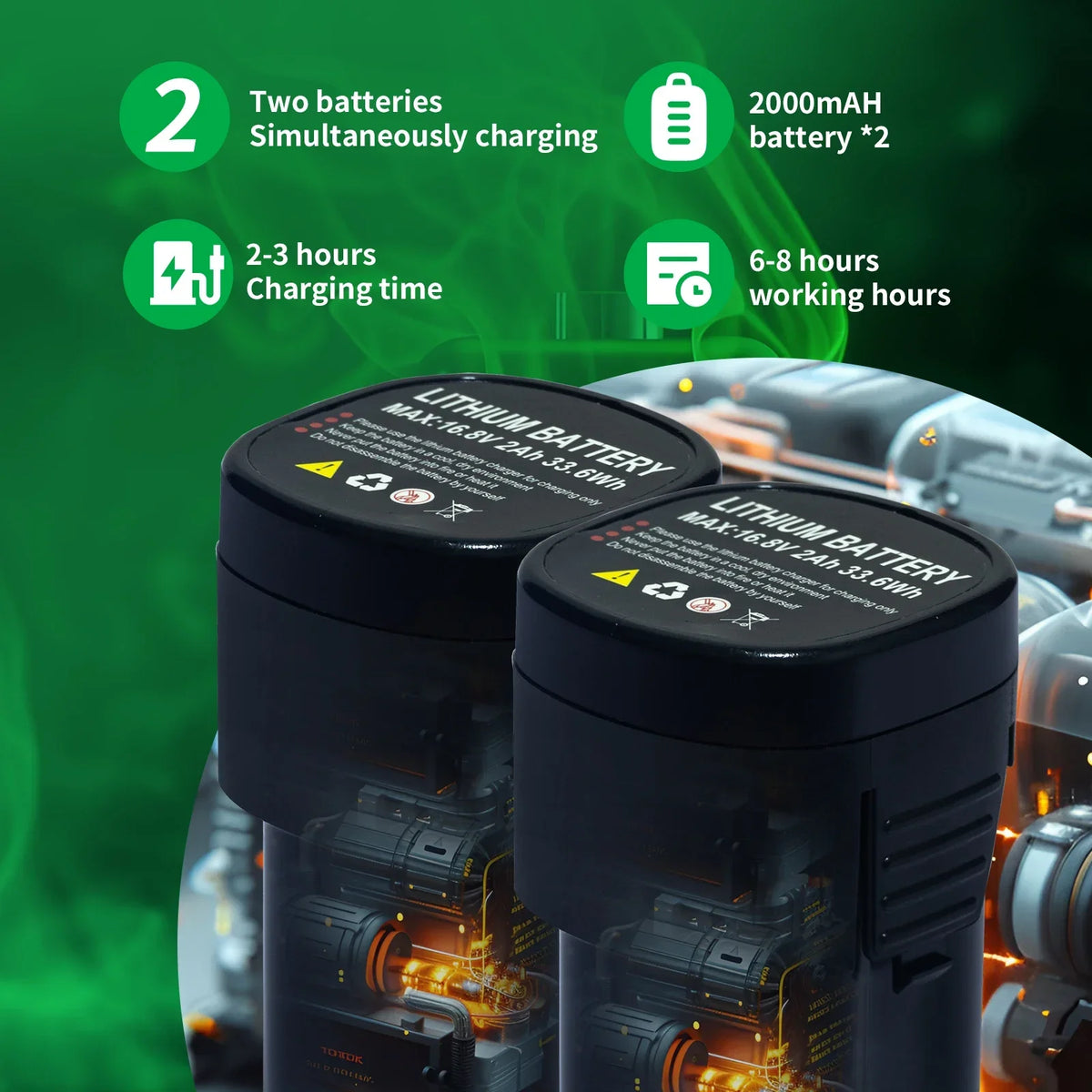 - Esnek batarya seçenekleri: tek bir 16.8V/2000mAh bataryadan (2–3 saat) uzun çalışma süreleri veya iki batarya ile uzatılmış oturumlar (4–6 saat). Şarj cihazı, daha hızlı dönüşüm için aynı anda iki bataryayı besleyebilir.