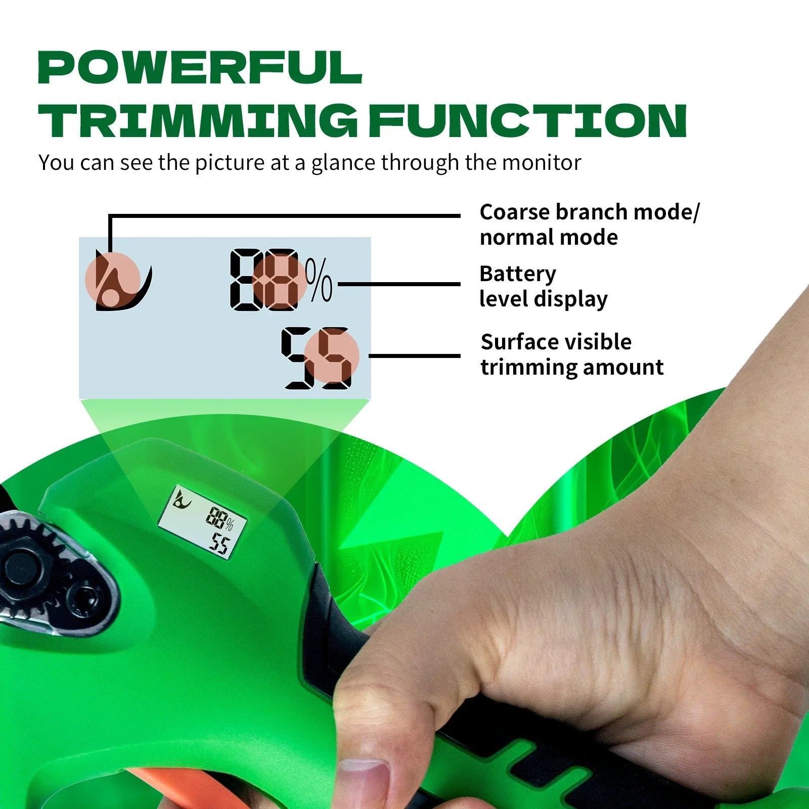 LCD Ekranlı Kablosuz Elektrikli Budama Makası, 28mm Kesim, 16.8V Pil