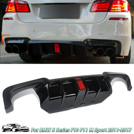 BMW 5 Serisi F10/F11'inizi entegre LED ışıklar içeren cesur bir karbon fiber görünüm tampon dudak ve arka difüzör ile yükseltin. Bu M5 R Tarzı difüzör, 2010–2017 BMW 5 Serisi F10 Sedan ve F11 Estate için M Sport tamponları ile tasarlanmıştır ve agresif, fabrika benzeri bir görünüm sunarken arka aerodinamiği artırır. Boyalı karbon fiber kaplama, spor görünümü dayanıklılık ile birleştirir ve aracınıza günlük kullanılabilirlikten ödün vermeden belirgin bir avantaj kazandırır.