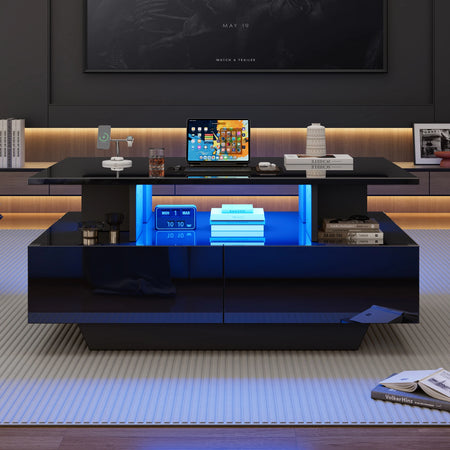 Modern Yüksek Parlaklıkta LED Aydınlatmalı ve Çekmeceli Kahve Masası