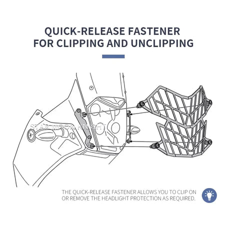 Yamaha Tenere 700 Far Koruyucu, zorlu off-road rotalarında farınızı çakıl, taş ve kalıntılardan korumak için tasarlanmış dayanıklı, CNC işlenmiş alüminyum bir koruyucudur. Kalıcı güç için hassas lazer kesim ve anotlama yapılmıştır; bu koruyucu, aydınlatma veya görünürlüğü etkilemeden sağlam koruma sağlar. Dahil edilen hızlı serbest bırakma bağlantısı, koruyucuyu yerine takmanızı veya saniyeler içinde çıkarmanızı sağlar—patikada koruma isteyen ve bakım için kolay erişim isteyen sürücüler için mükemmeldir. Kurulum için gereken her şey dahildir, Tenere 700 (2019–2024) için kolay bir yükseltme sunar.