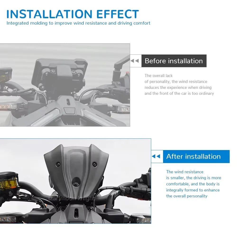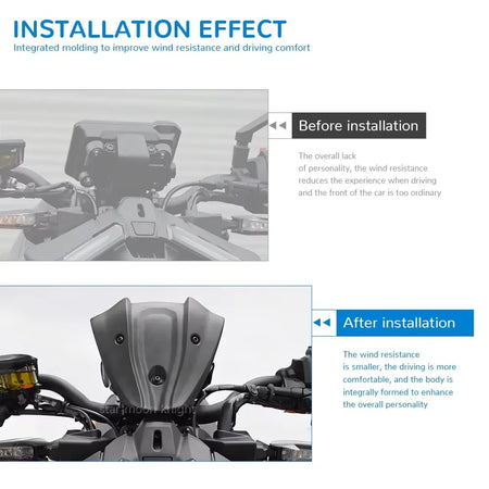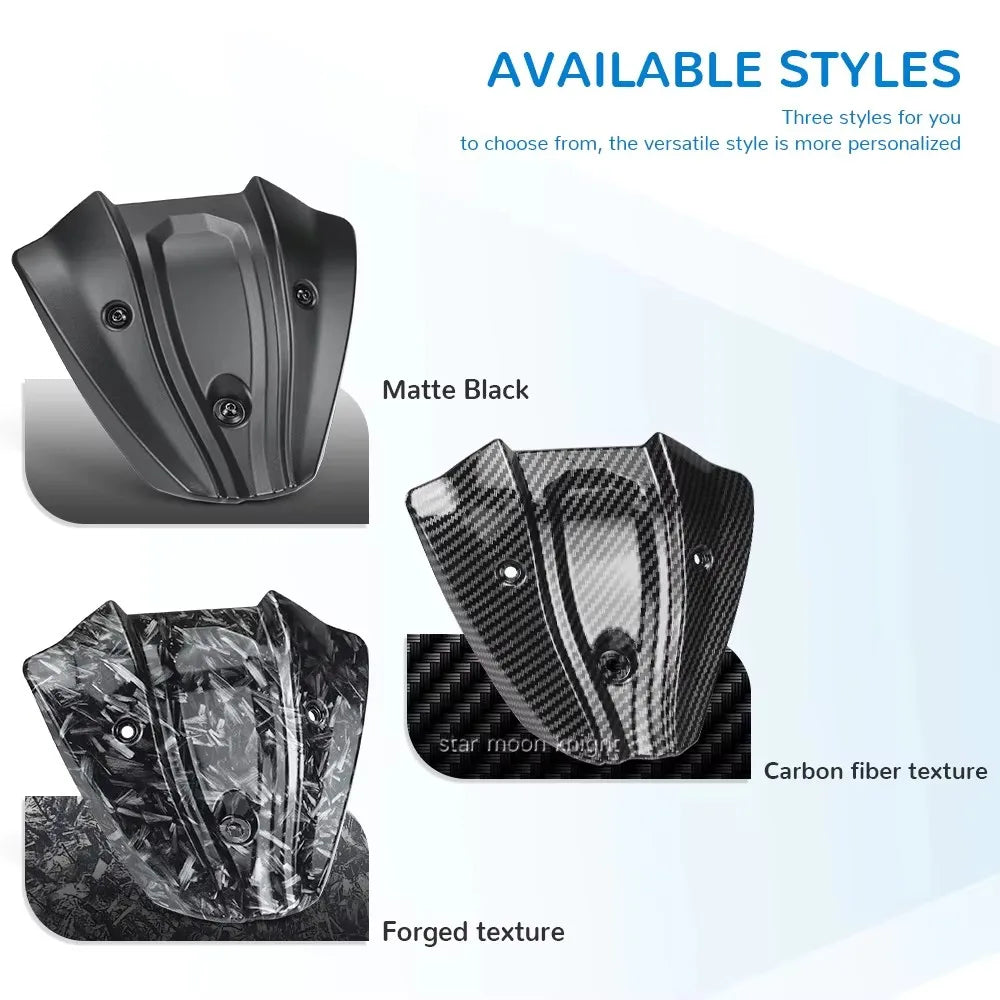 Değişiklik gerektirmeden uyacak şekilde tasarlanan bu rüzgarlık, performans ve stili artırır. Mat Siyah, Karbon Fiber ve Dövme olmak üzere üç renk seçeneğiyle sunulur; motosikletinizin görünümüne mükemmel uyum sağlar ve rüzgar, kalıntı ve hava koşullarına karşı güvenilir koruma sunar.