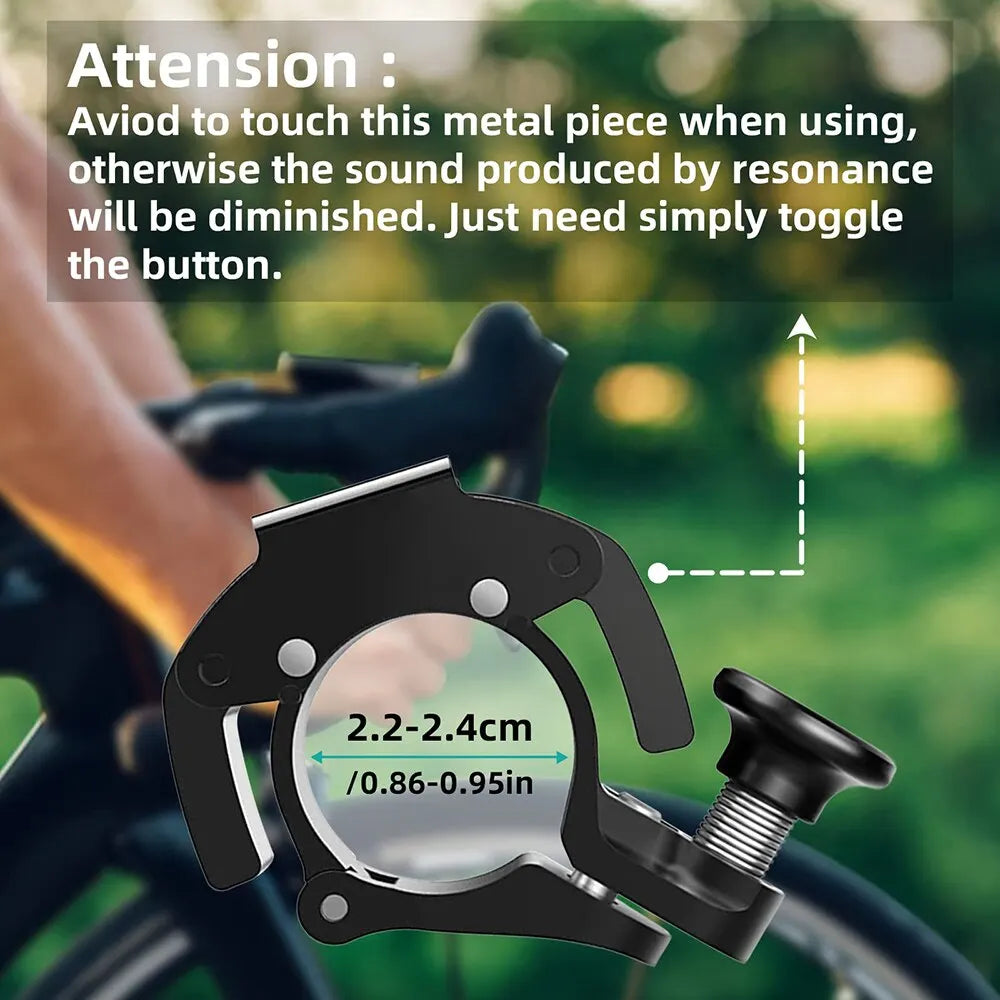 Keskin 90–100 dB sesi rüzgar ve arazi boyunca yayılır, böylece diğer sürücüler ve yayalar tarafından net şekilde duyulursunuz. Kompakt, gizli tasarım tutuşunuzu ve kol hareketlerinizi korur—fren veya vites değiştirmeye müdahale etmez—ve zorlu MTB rotalarında güvenilir bir uyarı sağlar.