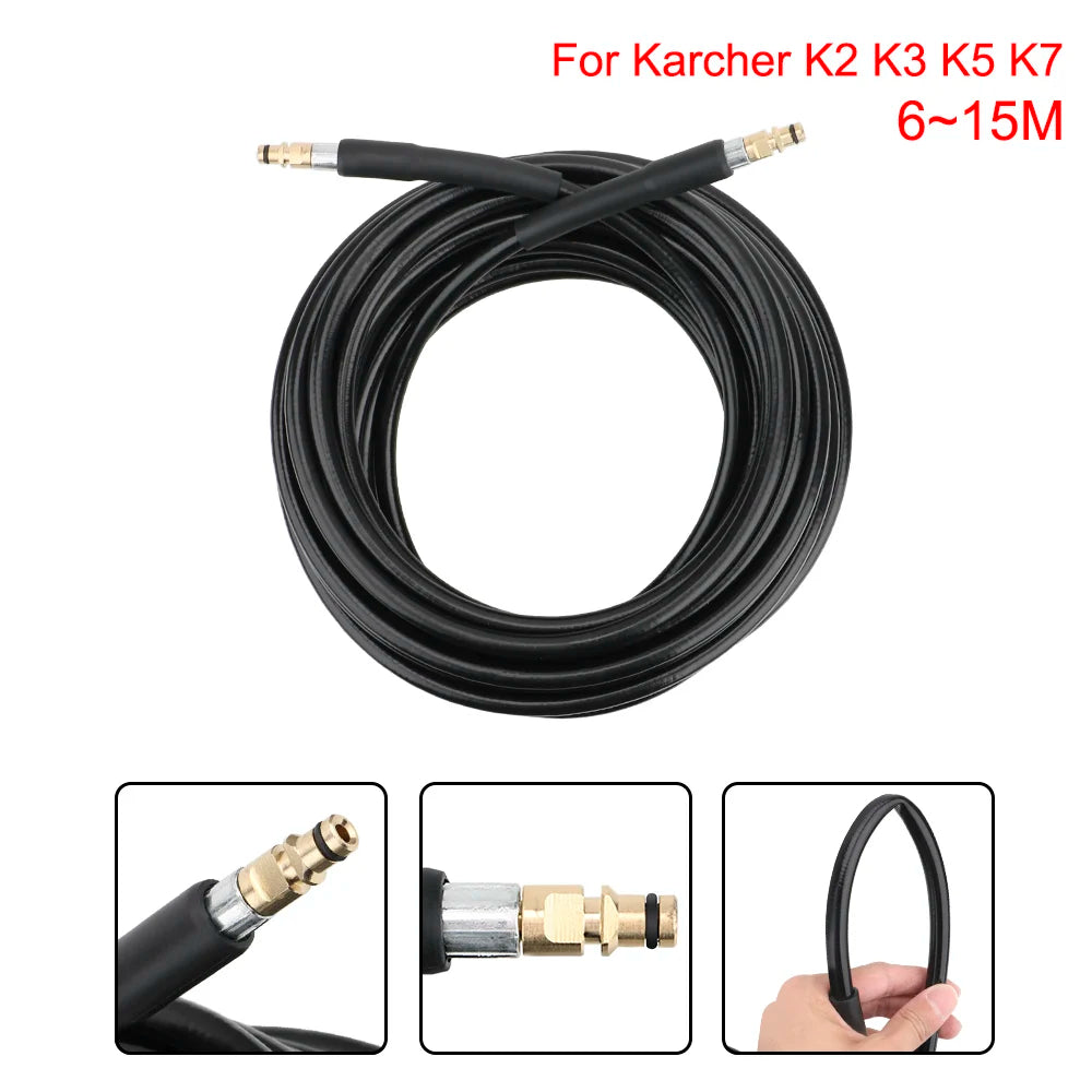 Uyumluluk ve çok yönlülük, bu uzatma hortumunun merkezindedir. Karcher K2, K3, K5 ve K7 basınçlı yıkayıcılarla uyumludur, bu da onu favori sisteminizi yenilemek veya temizlik araç setinizi genişletmek için pratik bir yükseltme haline getirir. Alanınıza uygun olarak 6 m (19 ft), 10 m (32 ft) veya 15 m (50 ft) uzunluklardan birini seçin; böylece zor köşelere, yüksek araçlara veya uzak teras alanlarına sürekli olarak birimi yeniden hedeflemeden veya yeniden konumlandırmadan ulaşabilirsiniz.